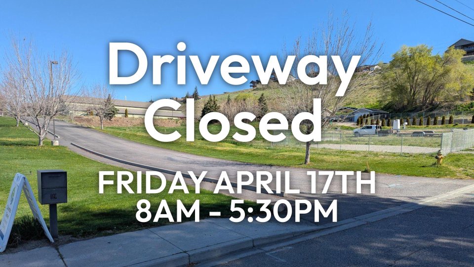 Please note that our driveway will be closed on Friday, April 17 from 8:00 AM to 5:30 PM due to utility work connecting the neighboring lot to city power. Crews will be cutting a channel through the driveway and repairing it the same day. We appreciate your patience and recommend planning alternate access during this time.