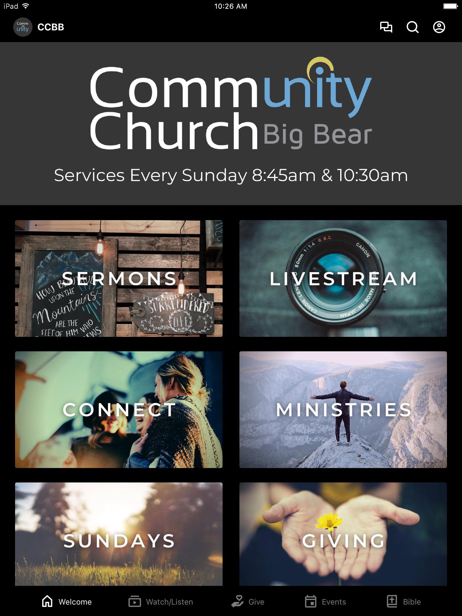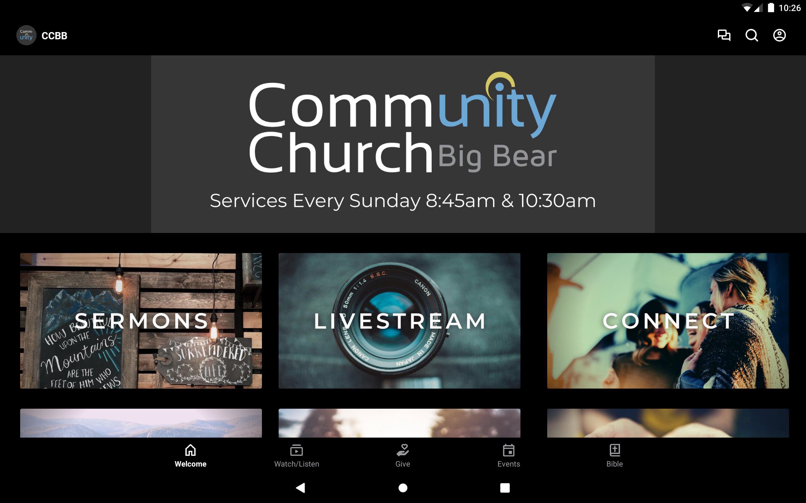 Grace. Truth. Love. | Everyone is welcome at Community Church Big Bear! Community Church Big Bear in Big Bear Lake, CA is a place where people of all backgrounds come together to learn about God, experience faith, and worship Him. Led by Pastor Mike Barnes, Community Church Big Bear is affiliated with The Christian and Missionary Alliance. Download the Community Church Big Bear mobile app to view our weekly services streamed live to your mobile device, access recent teachings, read about upcoming events, and more! For more information about Community Church Big Bear, visit bigbearchurch.com