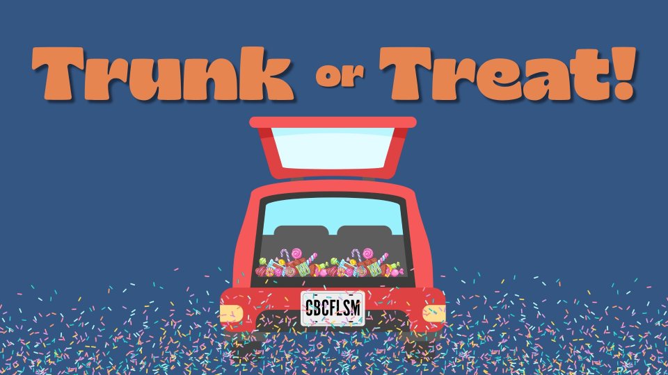 Join us on Sunday, October 26 at 4:00 PM in the main church parking lot for an evening full of fun, fellowship, and plenty of candy! Enjoy uniquely decorated trunks, a food truck, cotton candy, popcorn, and more. We’ll also have games and activities for even the tiniest of treaters. Costumes are encouraged (but not required), so come as you are and bring a festive spirit!