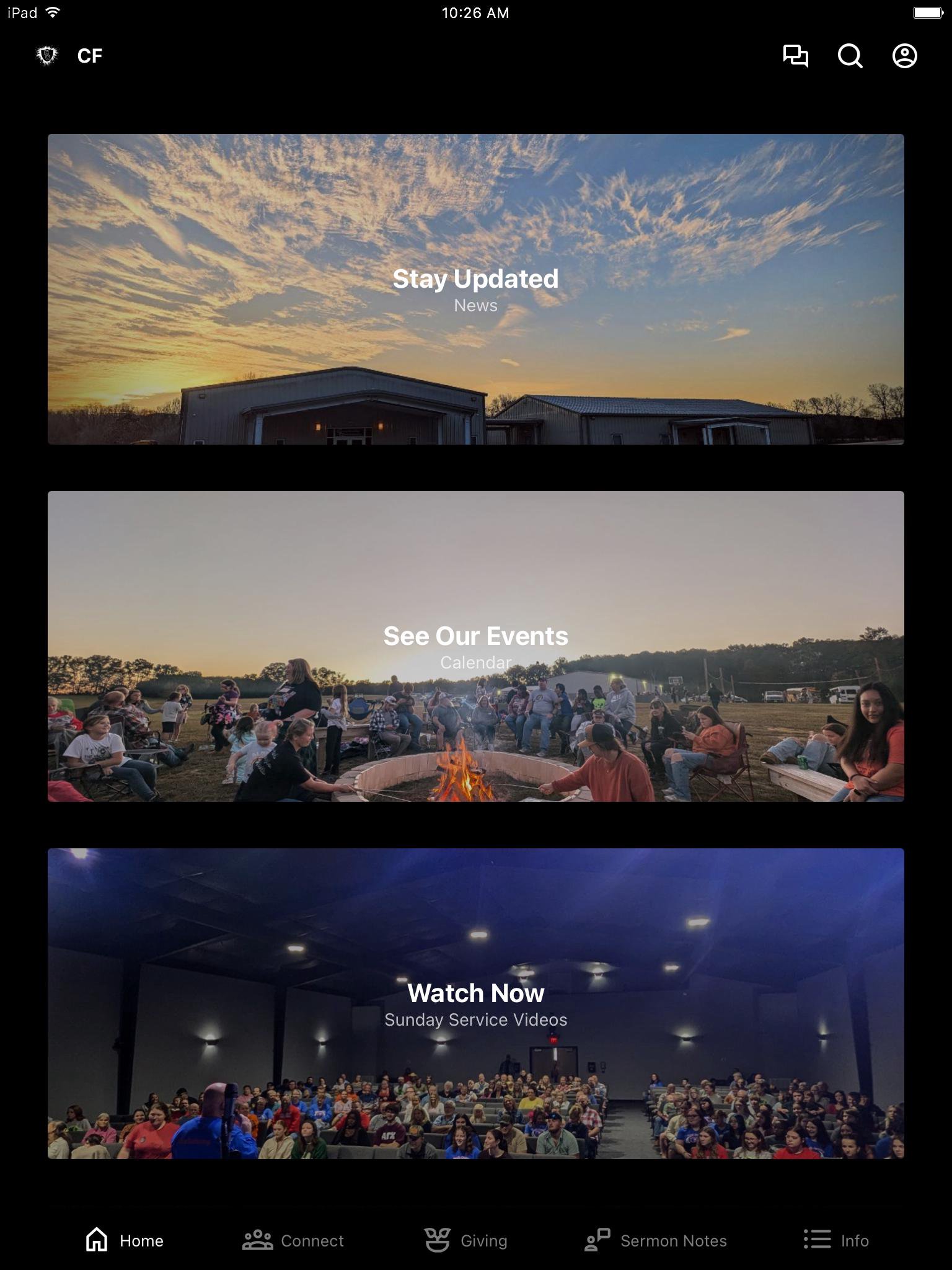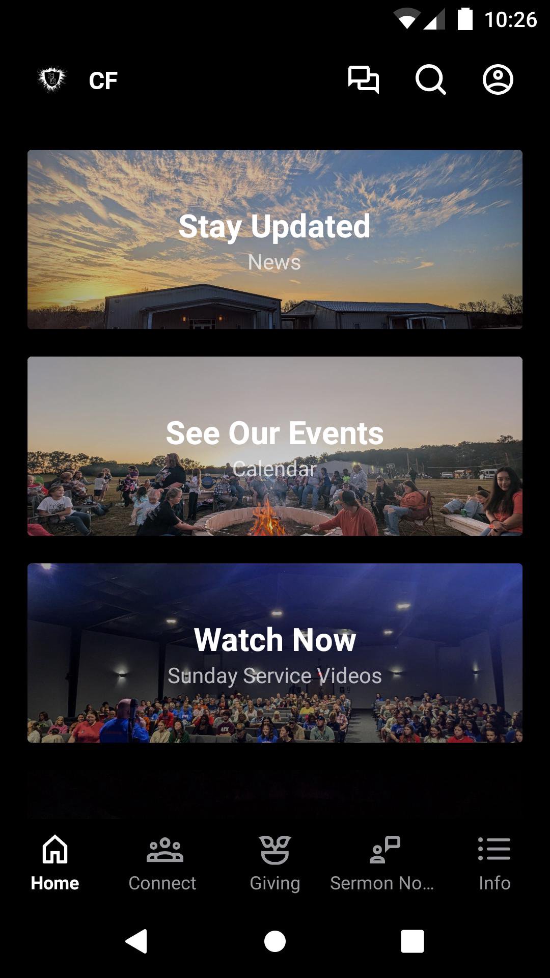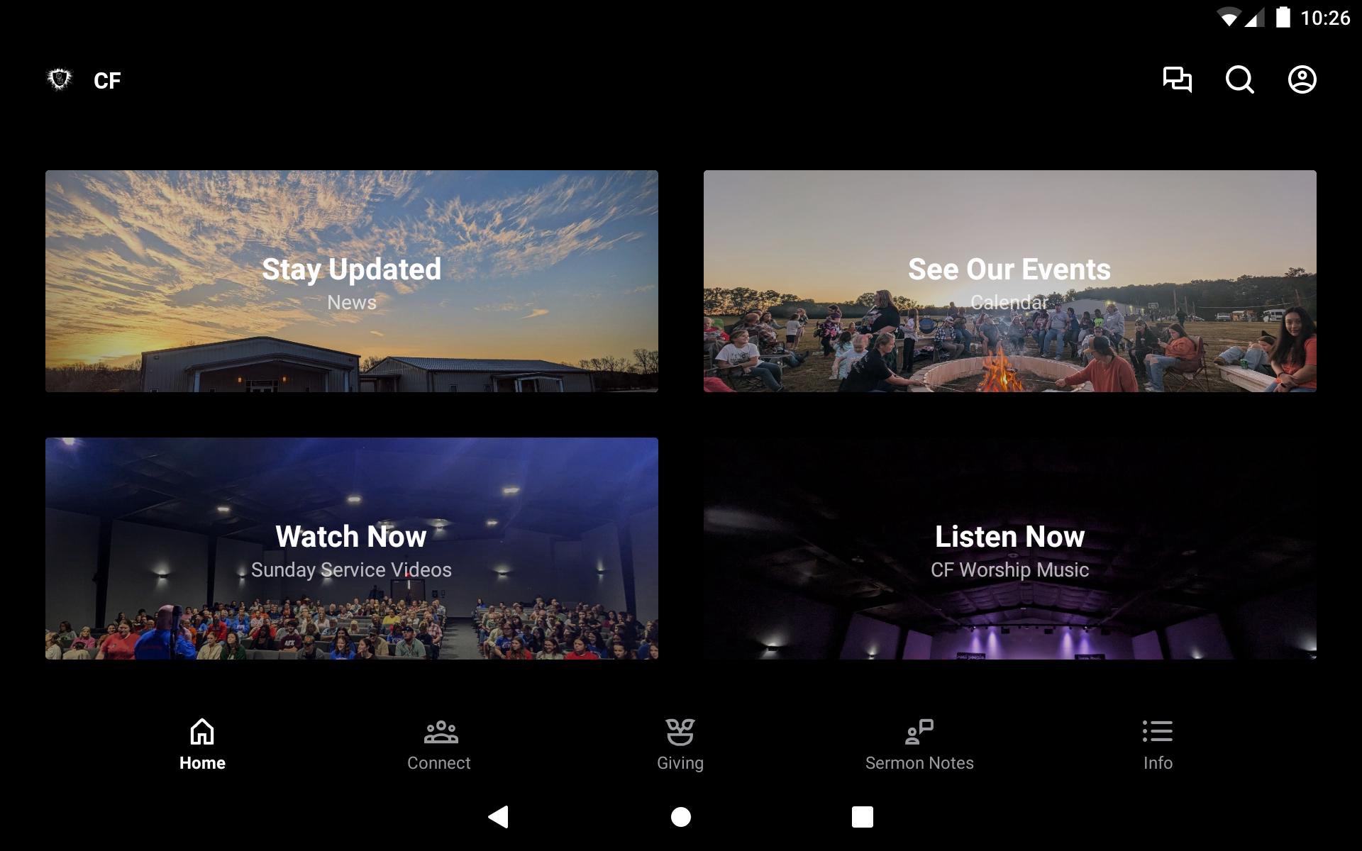 Our CF App is packed with powerful content and resources to help you grow and stay connected with us. Here you will be able to: - Stay up-to-date with Push Notifications - Check out upcoming events - Watch and listen to past & present services - Listen to a library of worship songs from our worship team - Make secure gifts online Our Mission Statement: We exist to be a Bible-driven, Spirit-led church where the worship lifts up God, the teaching of the Word challenges people, the Holy Spirit impacts our lives daily, and the fellowship encourages everyone to live in obedience to the Lord.