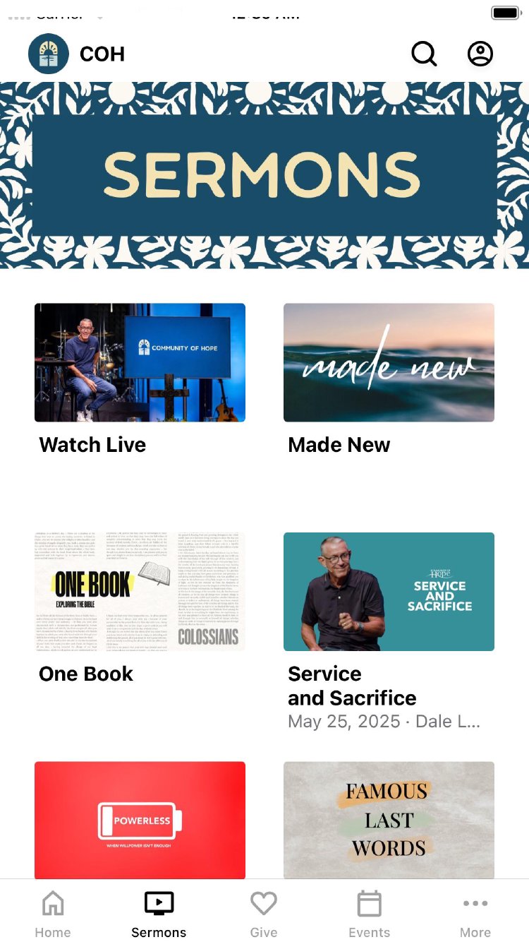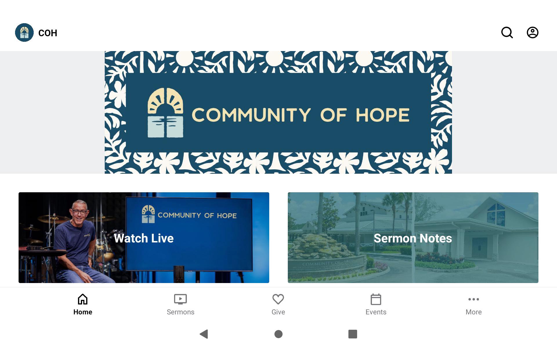 The Community of Hope App features sermons, music, and media content from Community of Hope church in Palm Beach County, FL.