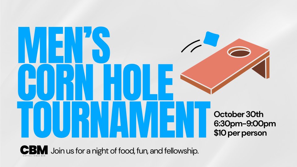 Are you a man at Coppell Bible looking for community? Come join us for our Fall 2025 Men's Corn Hole Tournament in the worship center!