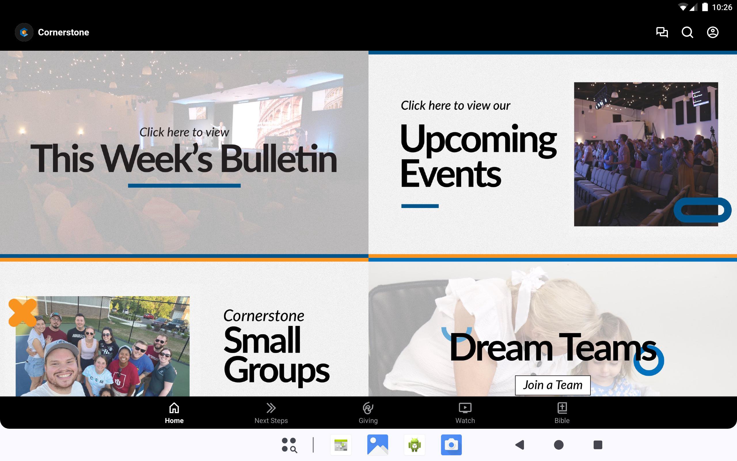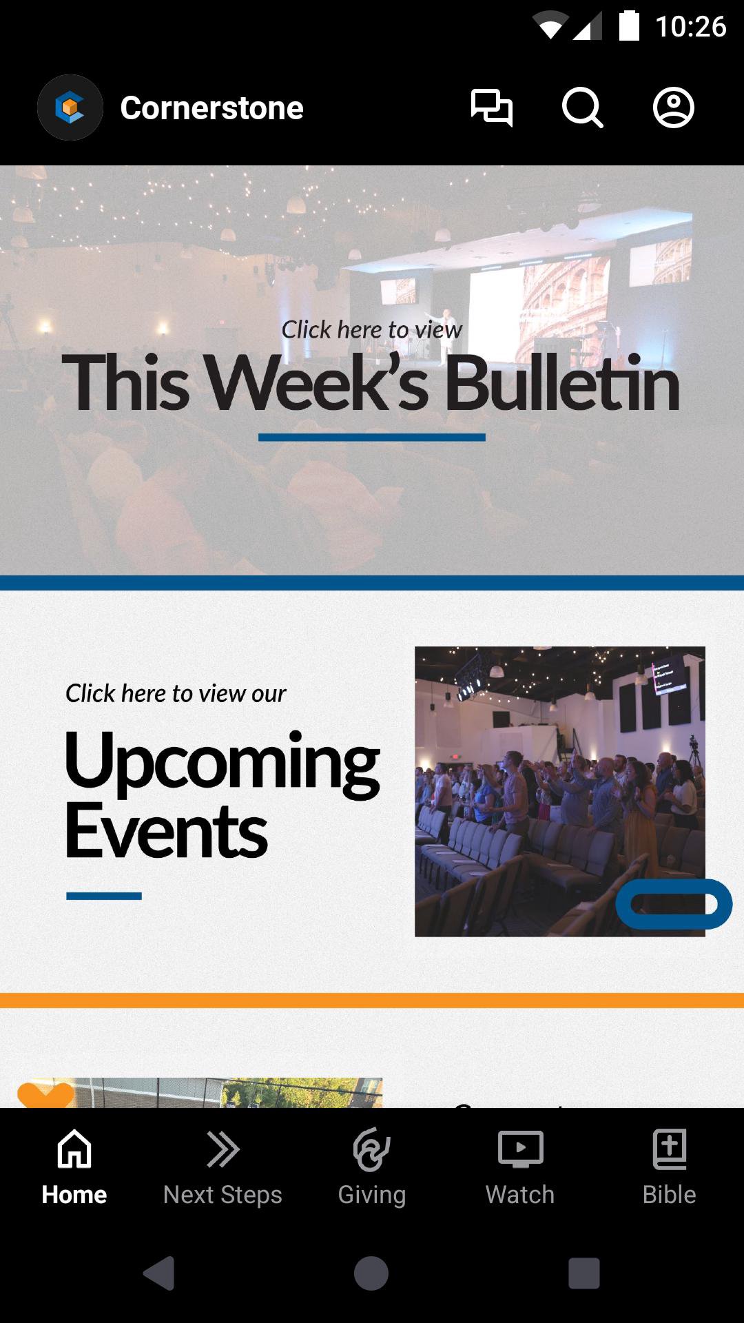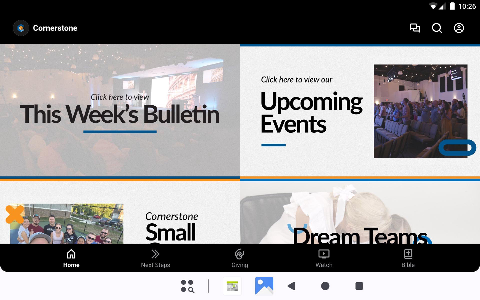 With the Cornerstone app, you will be able to keep up with our current/upcoming events, sermons, volunteer sign-ups, small groups and much more!