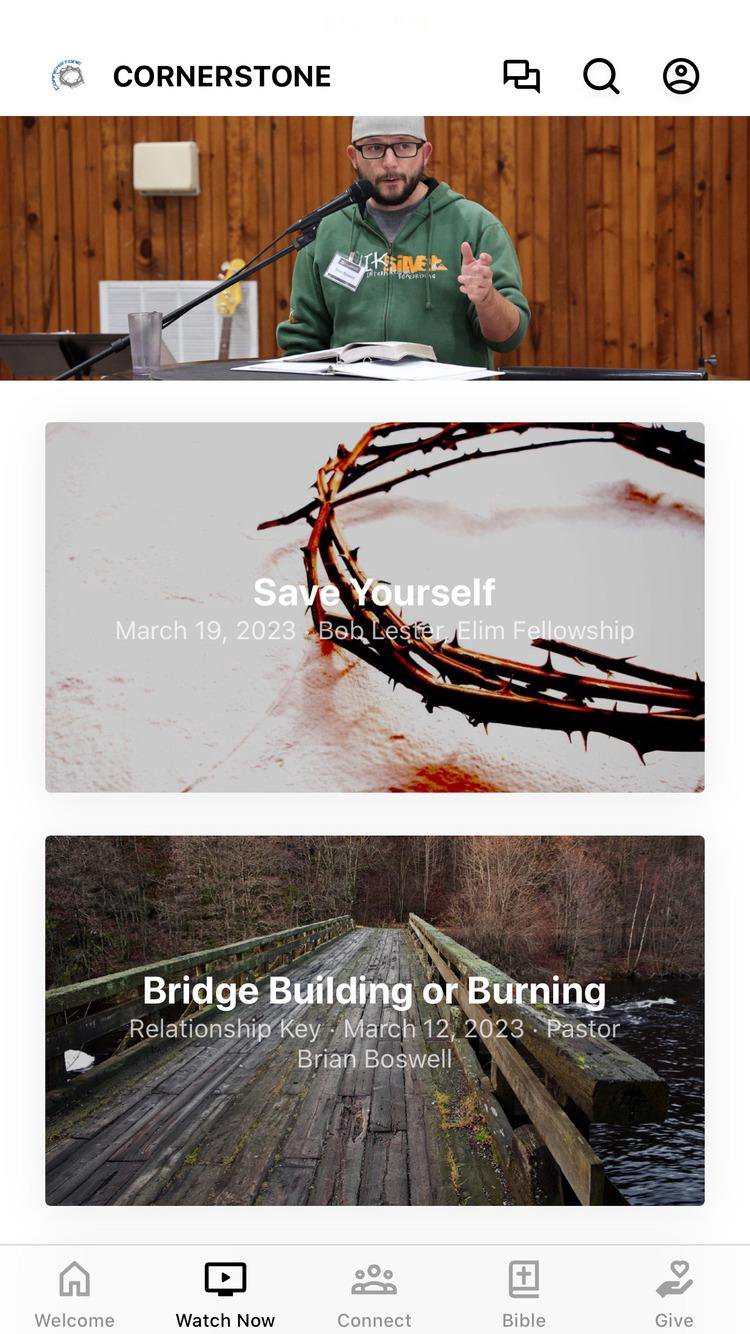 This app will help you stay connected with the day-to-day life of Cornerstone Church of Johnston County, NC. With this app you can: watch or listen to past messages; stay up to date with push notifications; share your favorite messages via Twitter, Facebook, or email; and download messages for offline listening.