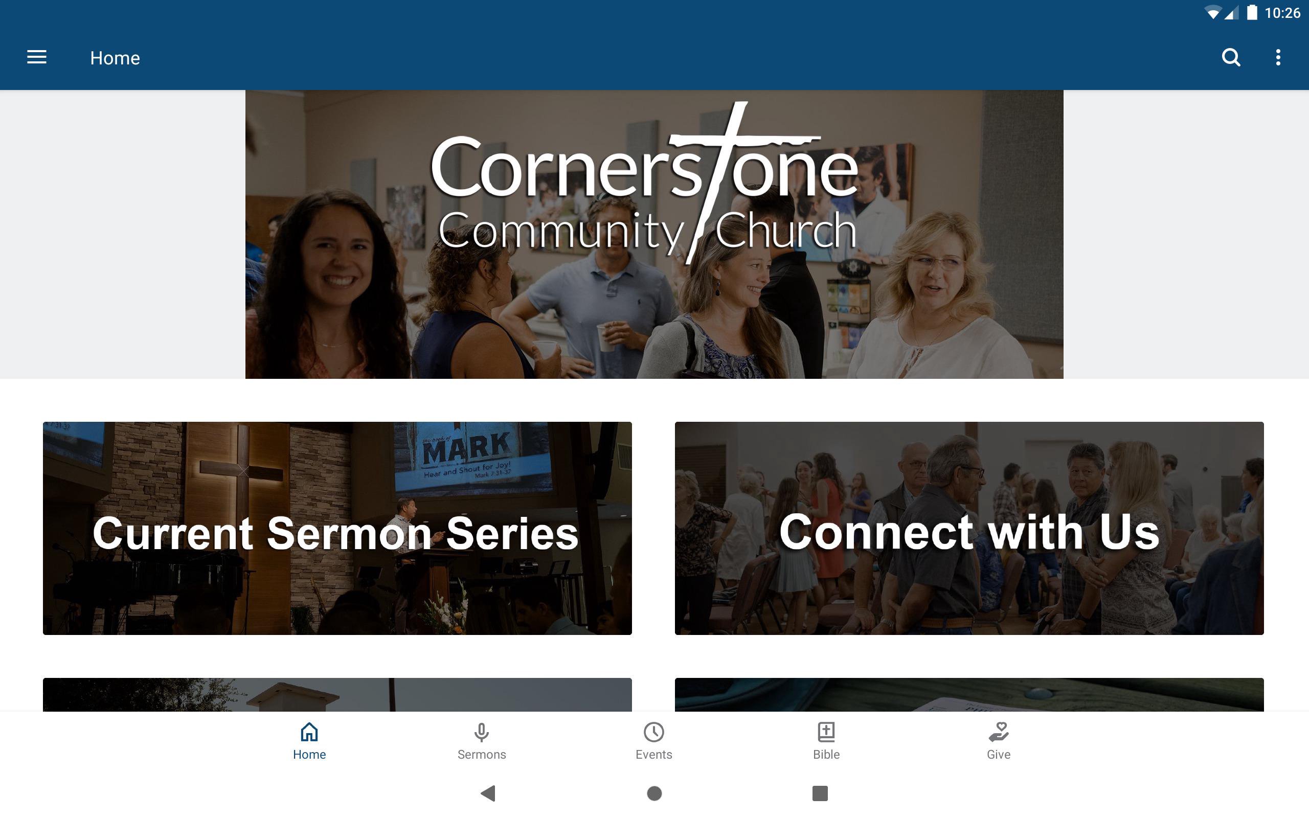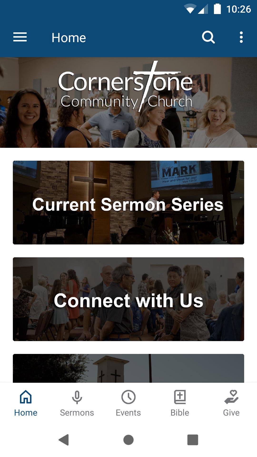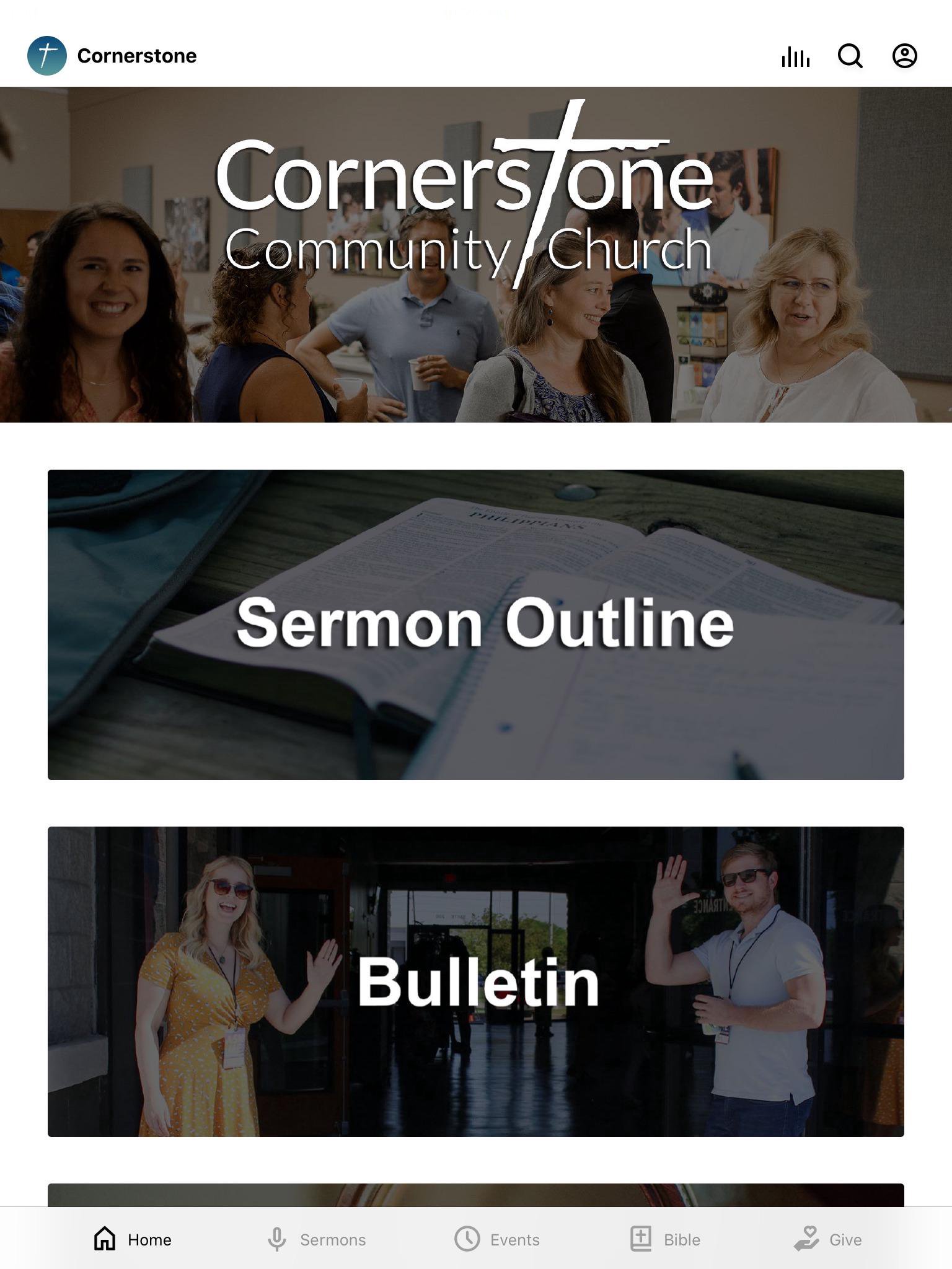 Welcome to the official app for Cornerstone Community Church of Atascadero. You can use the app to watch or listen to our searchable sermons (both for Sunday morning and Youth Group); view and sign up for Cornerstone events; read or listen to a daily one-year Bible reading plan; give online securely; and more! For more information about our church, visit https://cornerstoneca.org