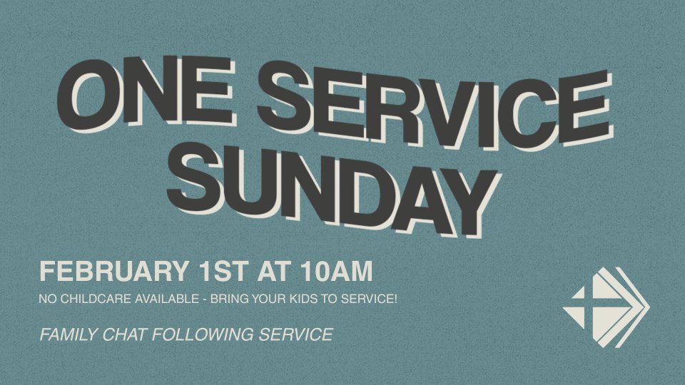 We're having one service at 10:00 AM on Sunday, February 1st! There will be no kids Sunday School that morning, so bring the whole family and join us as we worship together as a church family. This will be a wonderful opportunity to celebrate God’s goodness side by side, all ages together!