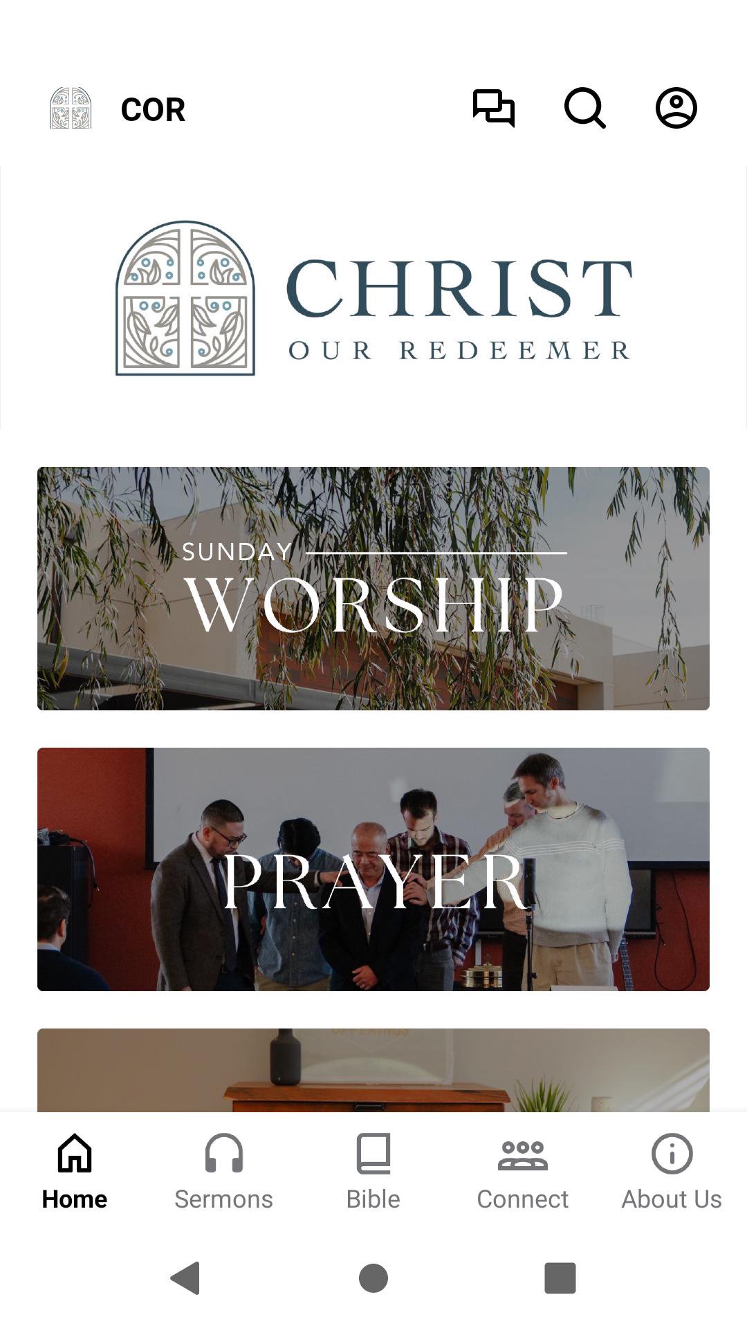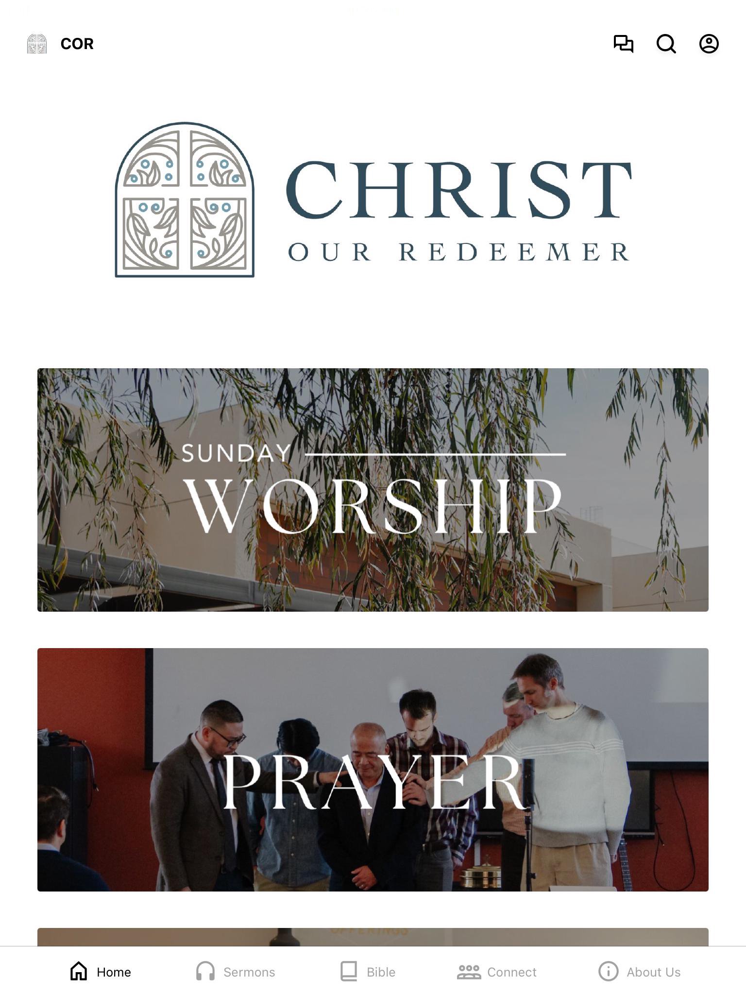 This app will help you stay connected with the day-to-day life of Christ Our Redeemer! With this app you can: watch or listen to past messages; stay up to date with push notifications; share your favorite messages via Twitter, Facebook, or email; and download messages for offline listening.