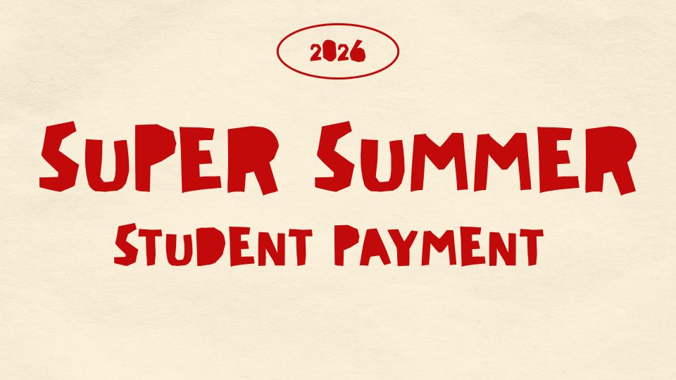 Super Summer Payment Form. Cost is $237 per student and must be paid for registration to be complete. Registration links will be sent via email by Caitlin. THIS IS NOT THE REGISTRATION LINK, simply the payment link. If you have questions, please email Caitlin.