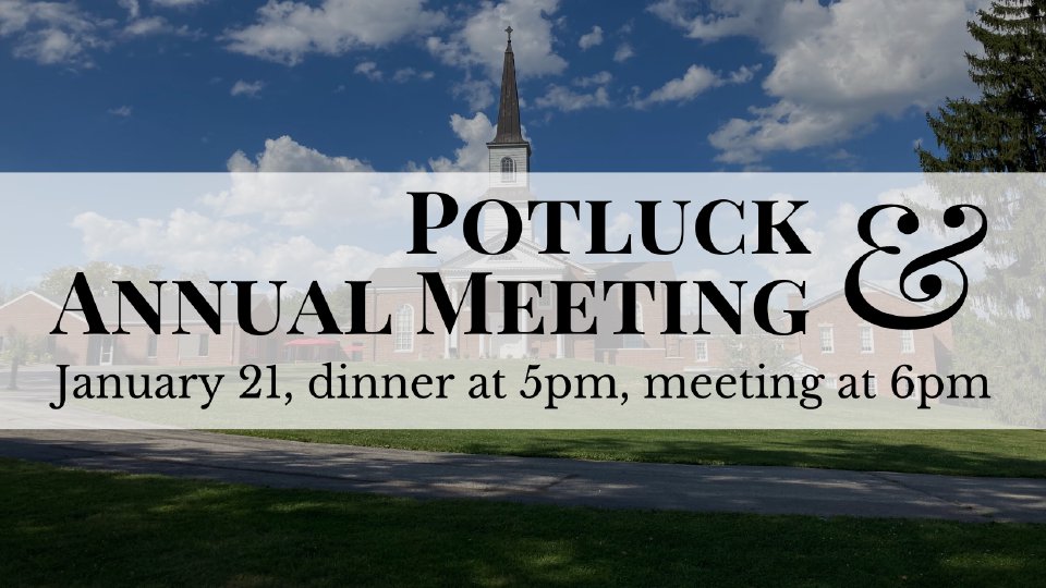 Sunday, January 21 | Potluck at 5:00pm, Meeting at 6:00pm Our annual meeting is a congregational meeting where we go over reports from the ministries of the church, a report from the session, a financial report, and we vote for our new church officers. Kids will be dismissed to the Heartland Room for a movie night after the voting portion of the meeting. Before the meeting, we will enjoy food and fellowship with a potluck! If your last name starts with A-M, please bring a side to share. If your last name begins with N-Z, please bring a dessert to share!