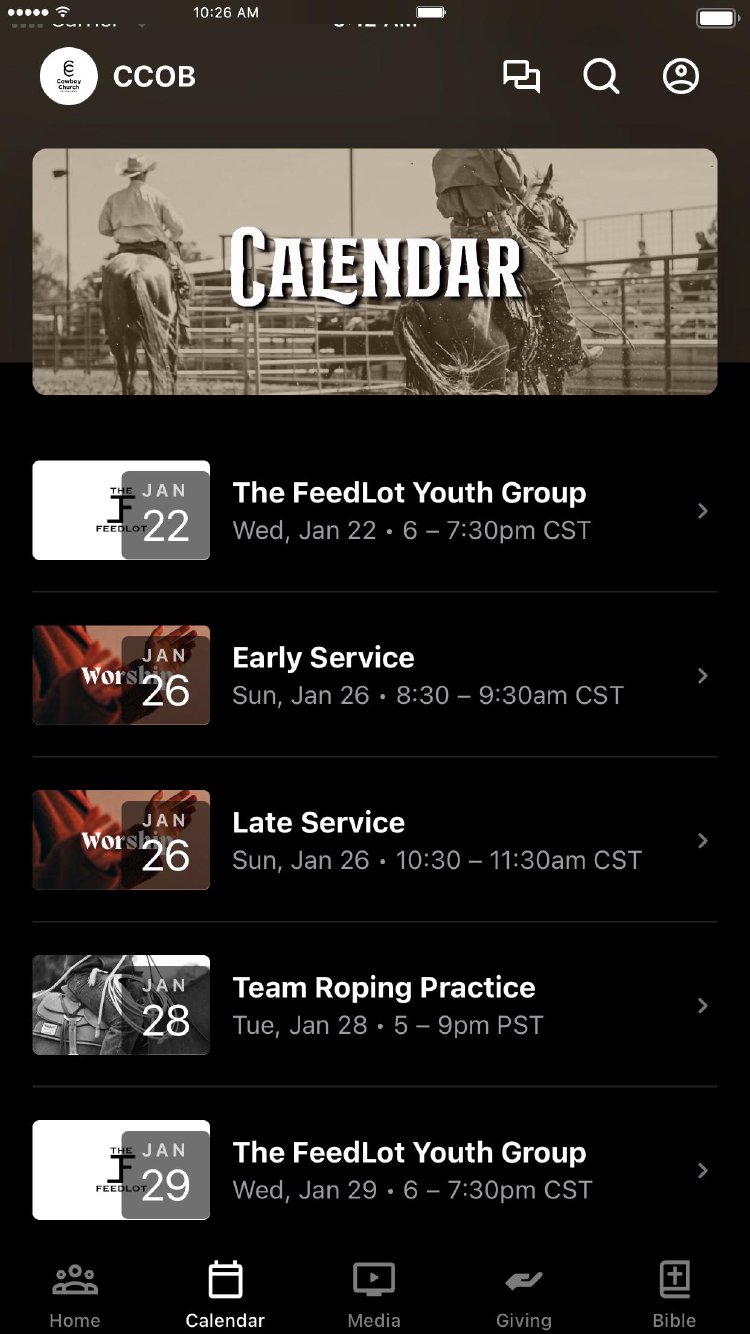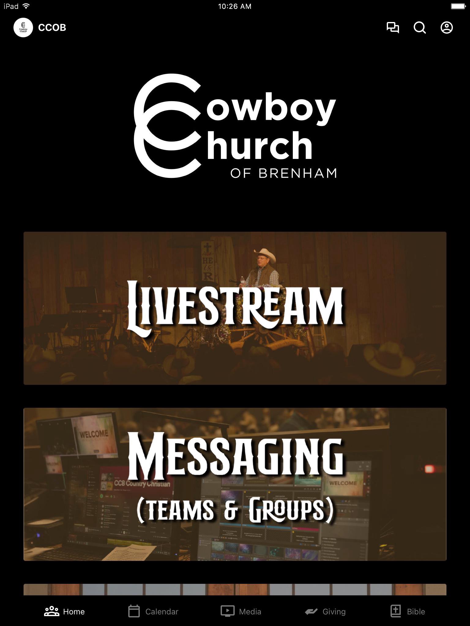 Welcome to the Cowboy Church of Brenham app, where faith, community, and the cowboy spirit come together to create a place of connection and encouragement. Whether you’re a lifelong member of our church or new to the area, this app will help you stay engaged in your spiritual journey, right from your phone. It’s designed to make it easy for you to stay connected, grow in your faith, and share life with others in the Cowboy Church of Brenham family. What You’ll Find Inside the Cowboy Church of Brenham App: - Live Services and Sermons: Experience inspiring worship and biblically-centered teaching wherever you are. You can watch live services, or catch up on past messages from our pastors. Each sermon is designed to challenge, encourage, and equip you to live out your faith in your everyday life. - Event Updates:Stay informed about all the happenings at Cowboy Church of Brenham! From weekly services to special events like rodeos, community outreach, and fellowship gatherings, this app keeps you up to date on everything you need to know. - Daily Devotionals and Bible Access: Strengthen your walk with Christ every day through Scripture and devotionals. Whether you have a few minutes or more time to spare, the app gives you quick access to daily Bible readings and devotionals to help you grow spiritually and stay grounded in your faith. - Prayer Requests: We believe in the power of prayer. The app allows you to submit prayer requests, so our church family can lift you up. We also encourage you to join us in praying for others—because prayer is at the heart of what we do. - Online Giving: Support the mission of Cowboy Church of Brenham through secure, easy online giving. Whether it’s your tithe or a special offering, our app makes it simple to give back and further the Kingdom of God, all from your mobile device. - Connection and Community: At Cowboy Church of Brenham, we’re a family. Our app provides access to small groups, Bible studies, and community events that help you build relationships, deepen your faith, and find support in your walk with Christ. You’ll find ways to get involved and stay connected with the church family throughout the week. - Church News and Resources: Stay up to date on church activities, service times, and the latest news from Cowboy Church of Brenham. Our app is designed to make it easier than ever to stay connected to your church family, grow in your faith, and engage in the life of our community. Whether you’re attending services from home, catching up on messages, or getting involved in a new group or event, the Cowboy Church of Brenham app is your digital gateway to everything we have to offer. With a focus on faith, family, and the cowboy spirit, we are passionate about building a community where you can belong, grow, and serve. Whether you're a longtime member or just starting out, the Cowboy Church of Brenham app is here to support and encourage you along your journey. Download the app today, and let’s continue to walk in faith, together.