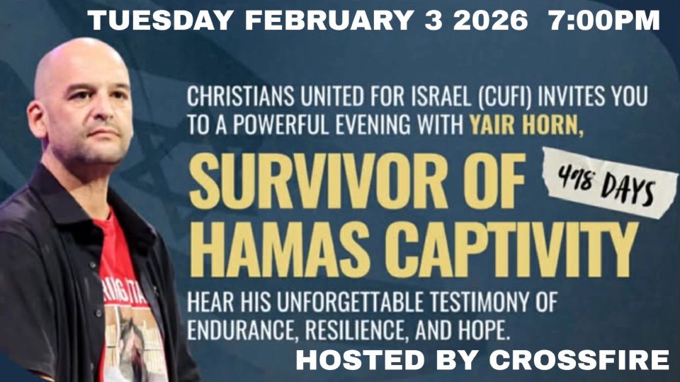 You are invited to come hear Yair Horn and his incredible testimony of survival, after being a Hamas captive.