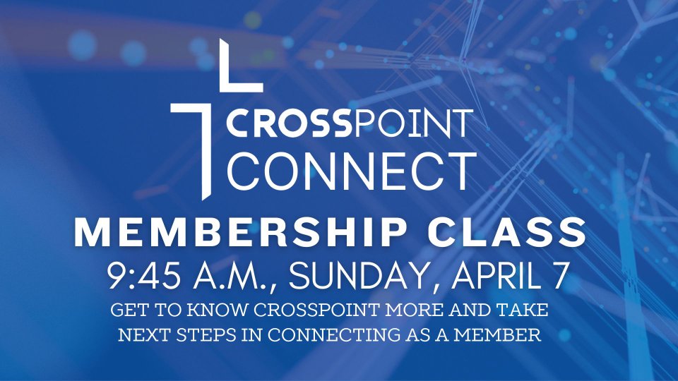 Crosspoint is reviving its classes on focused areas of the church. The first will be Crosspoint Connect - Membership on Sunday, April 7, at 9:45 a.m. This class is for anyone interested in learning more about Crosspoint, what we believe and how to formally become a member.