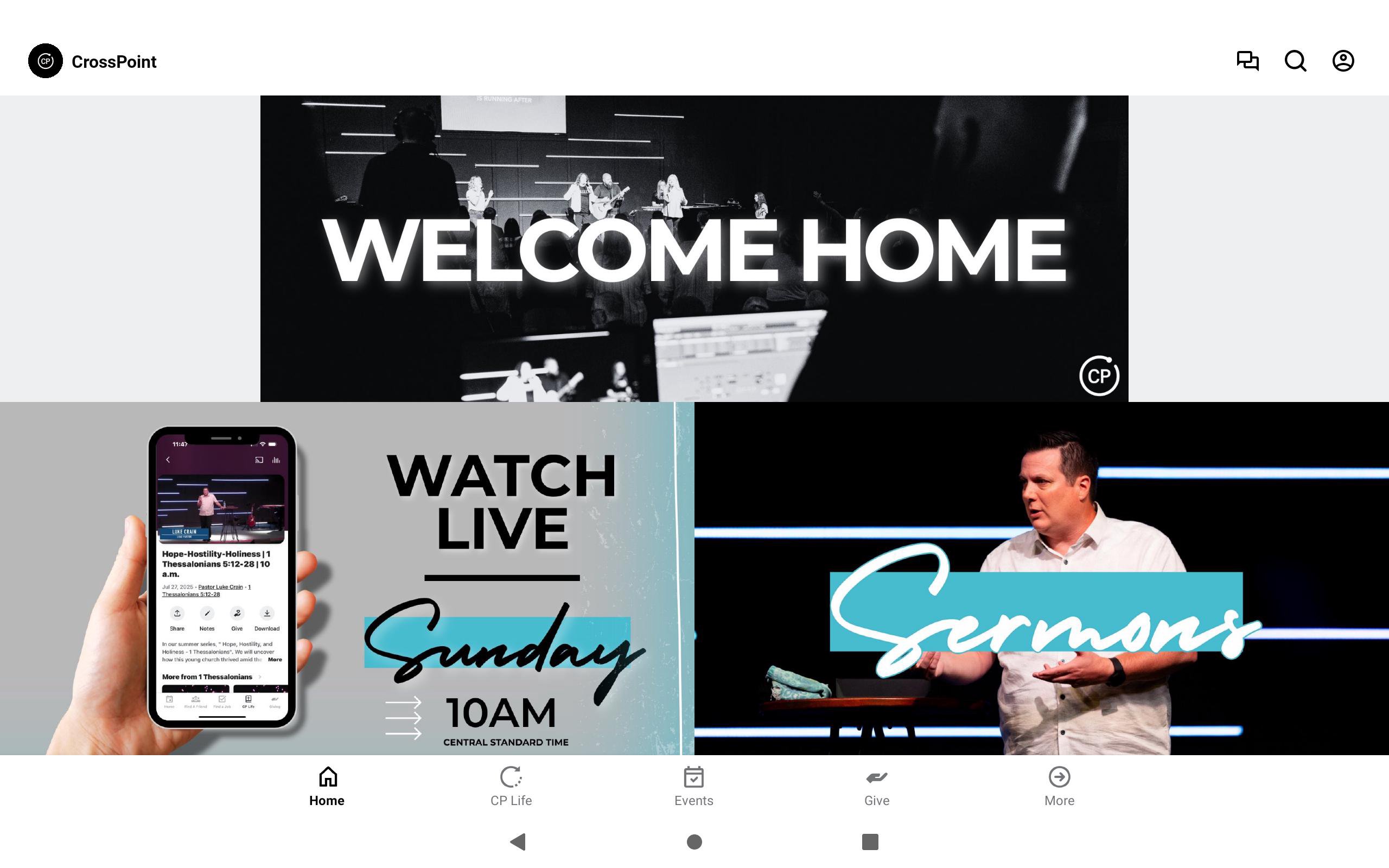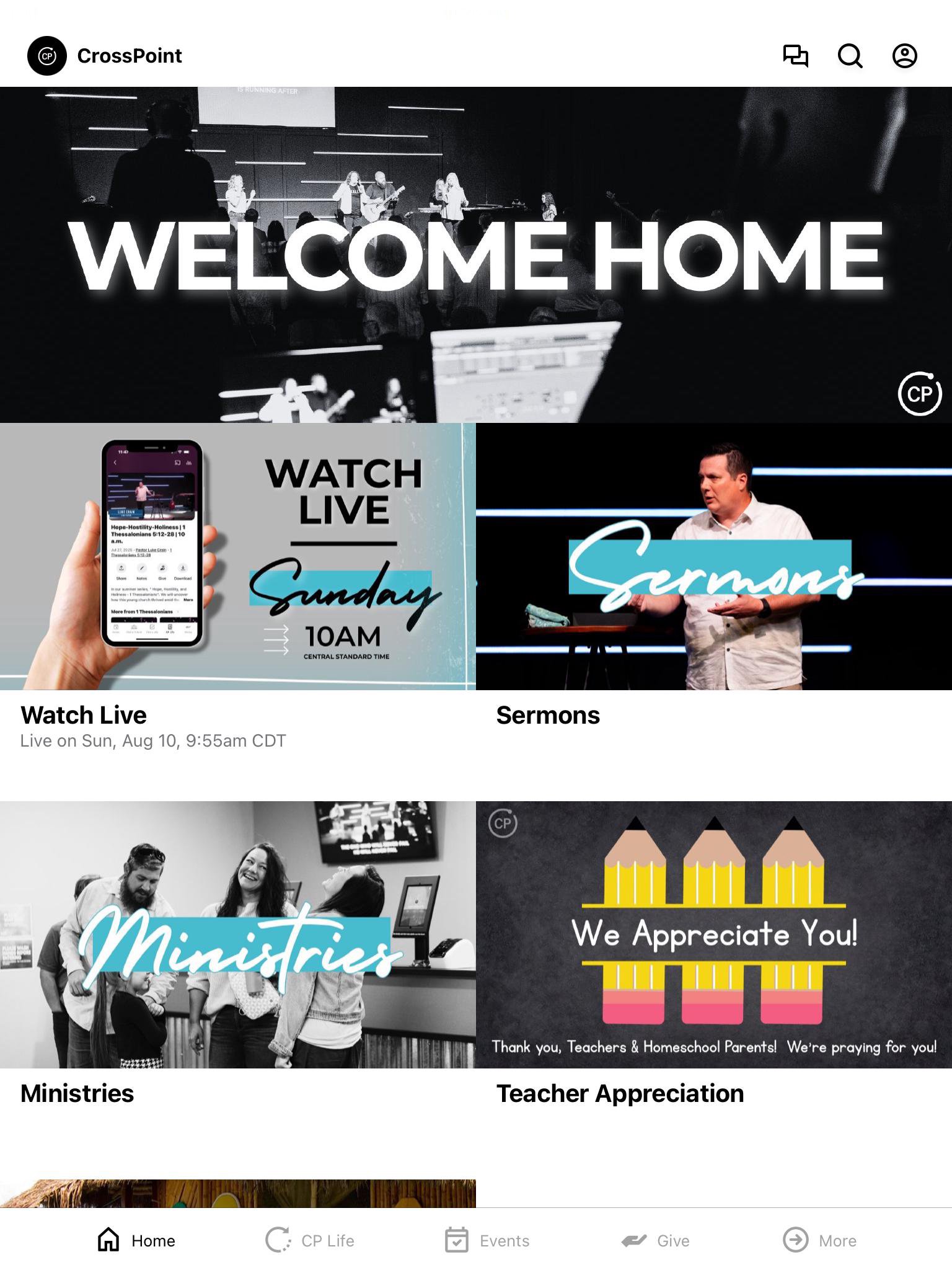 Welcome to the CrossPoint App. Join us as we GROW together spiritually, CONNECT to one another, SERVE our community, and SHARE God's love with others.