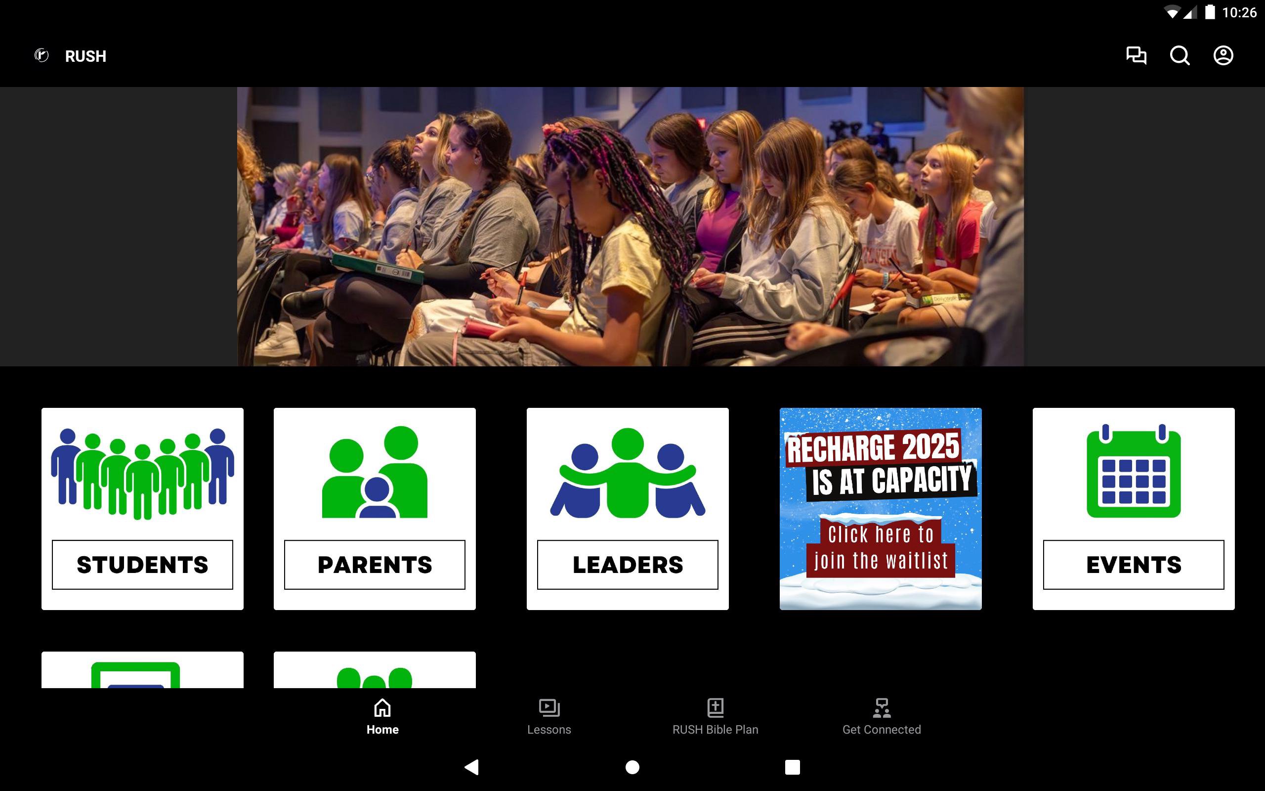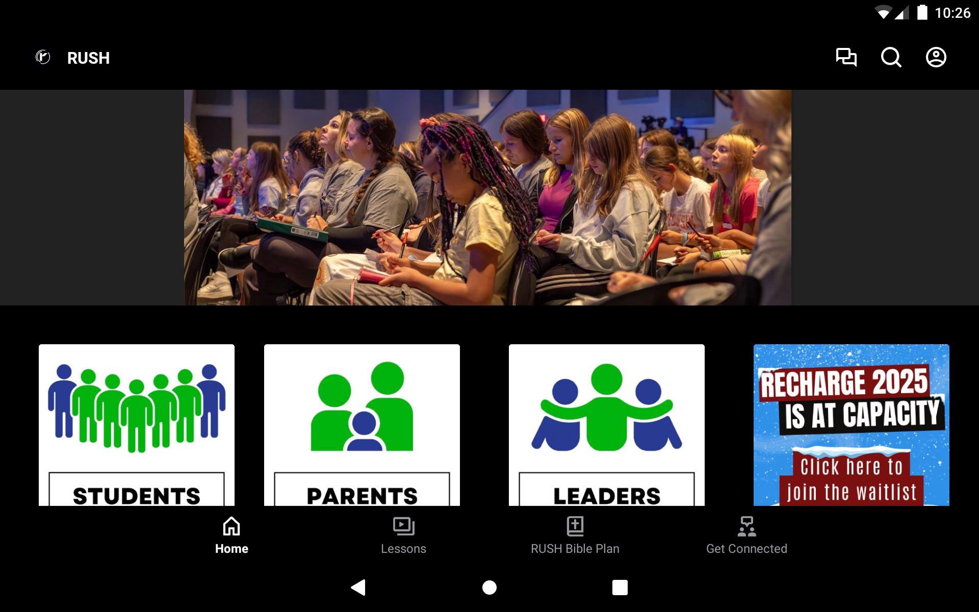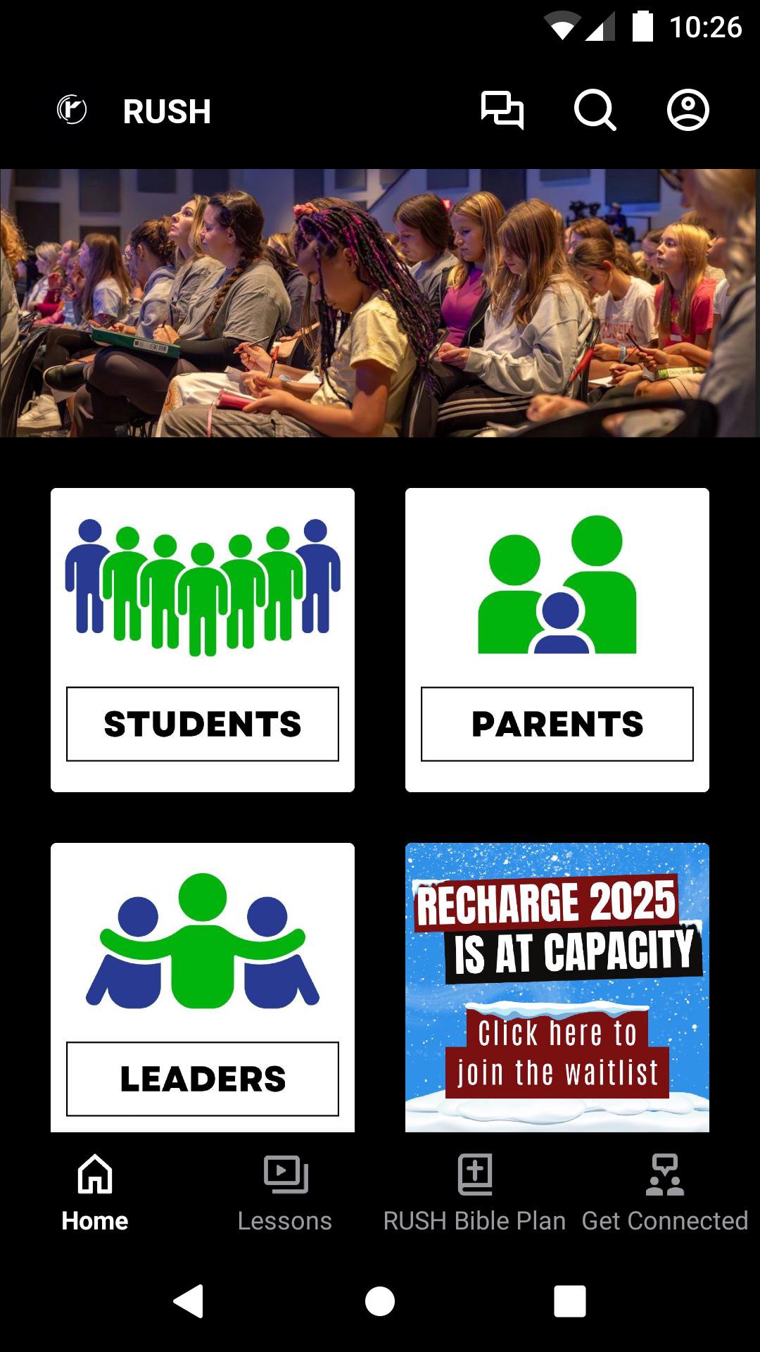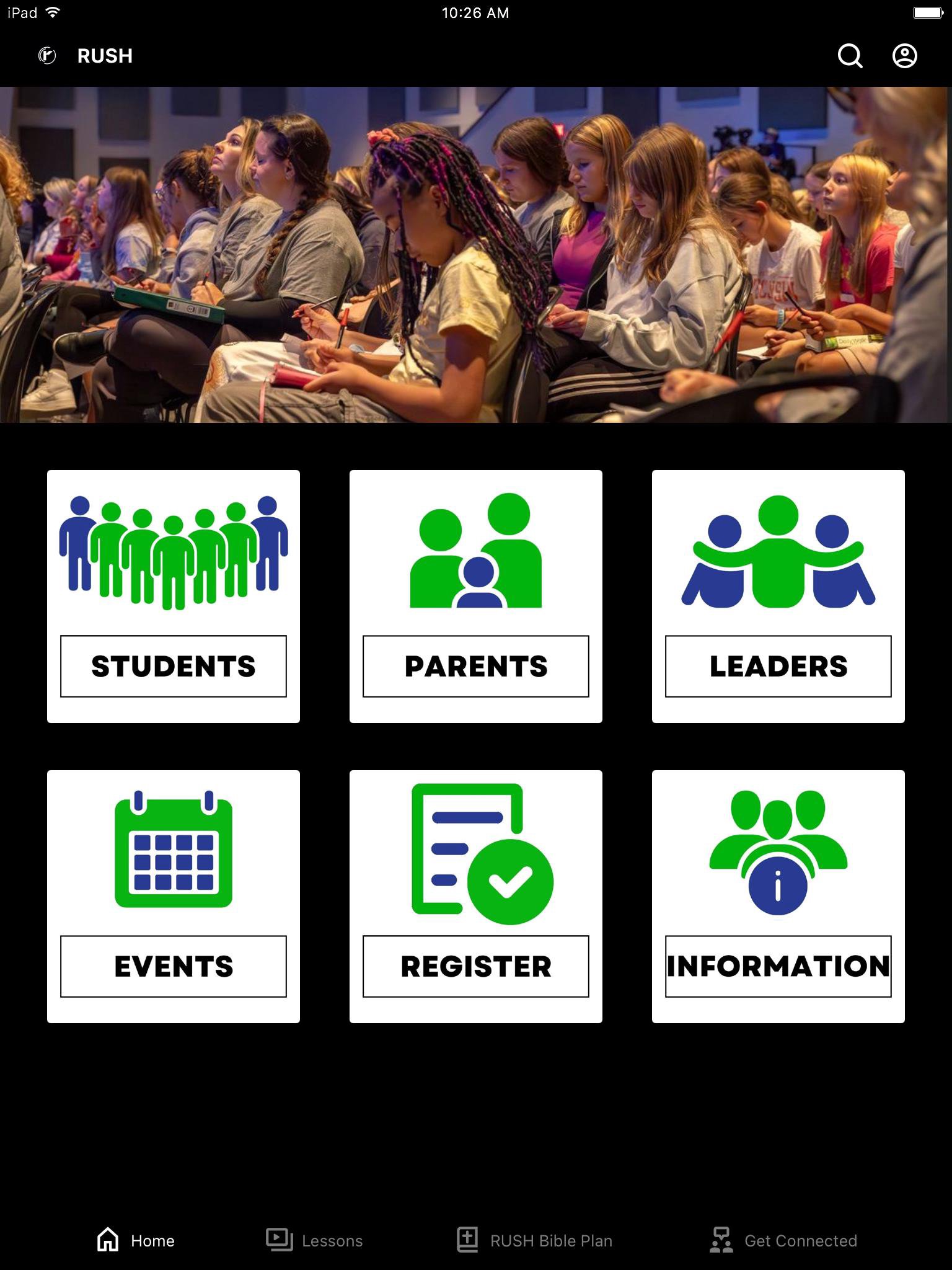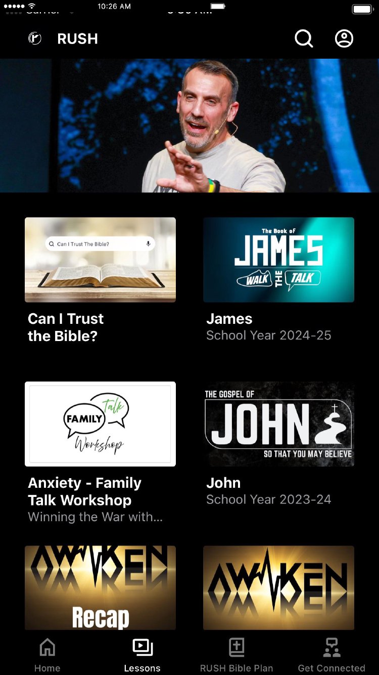 The RUSH app is a resource for our youth group's students, parents, and leaders.