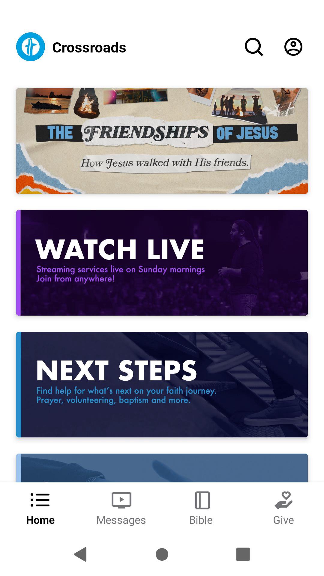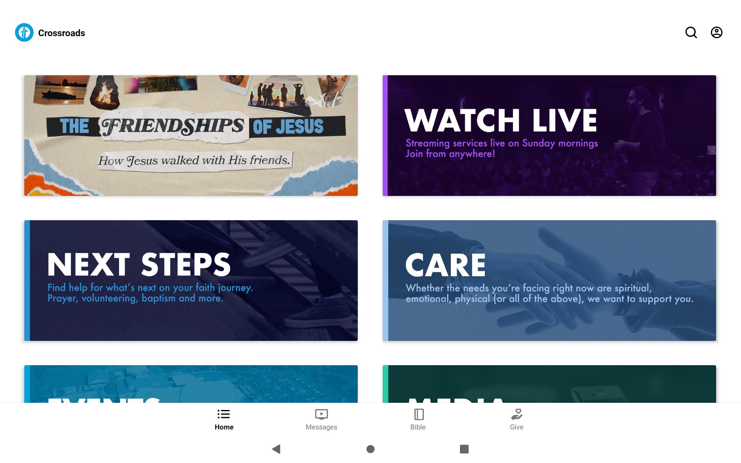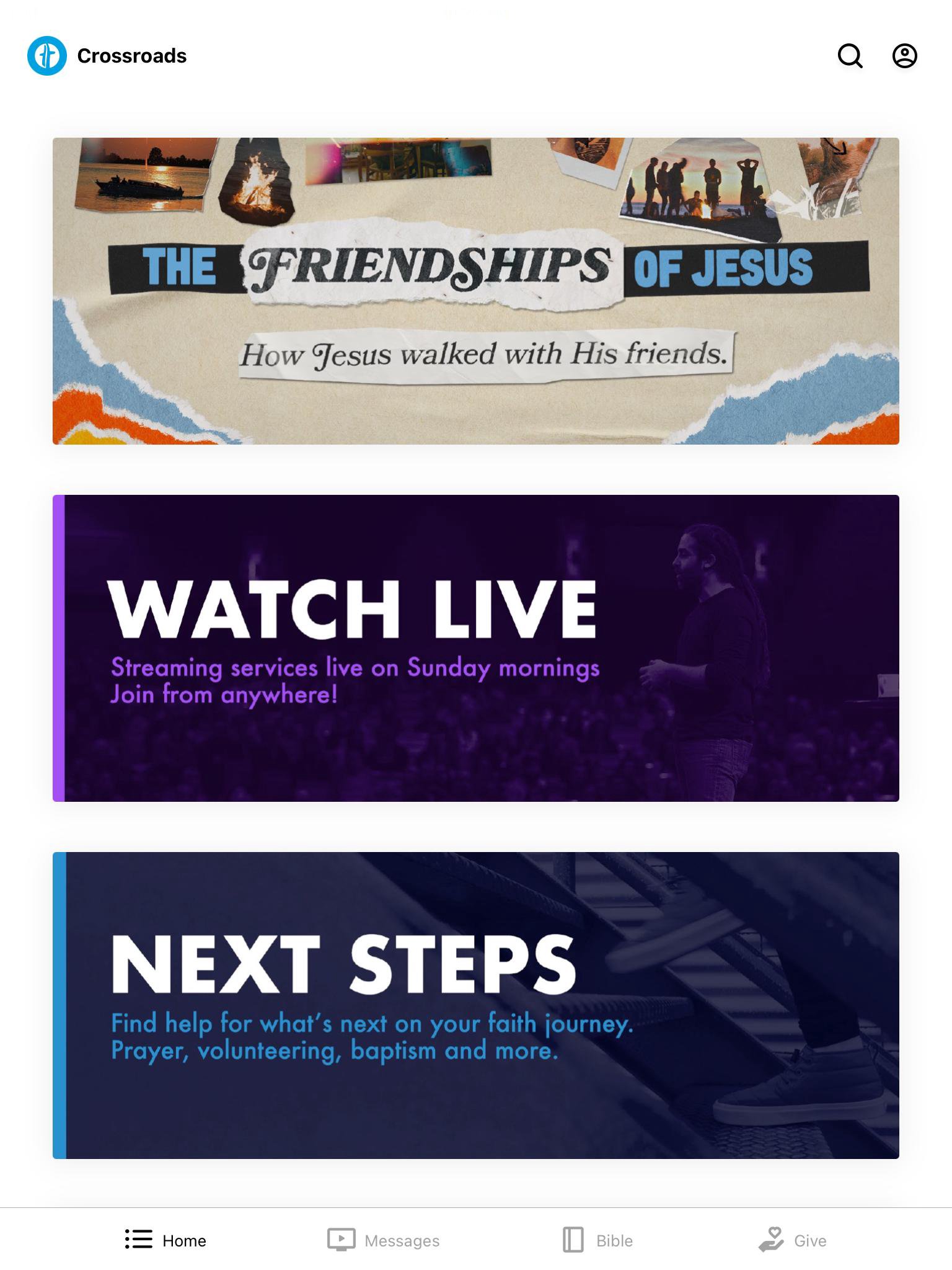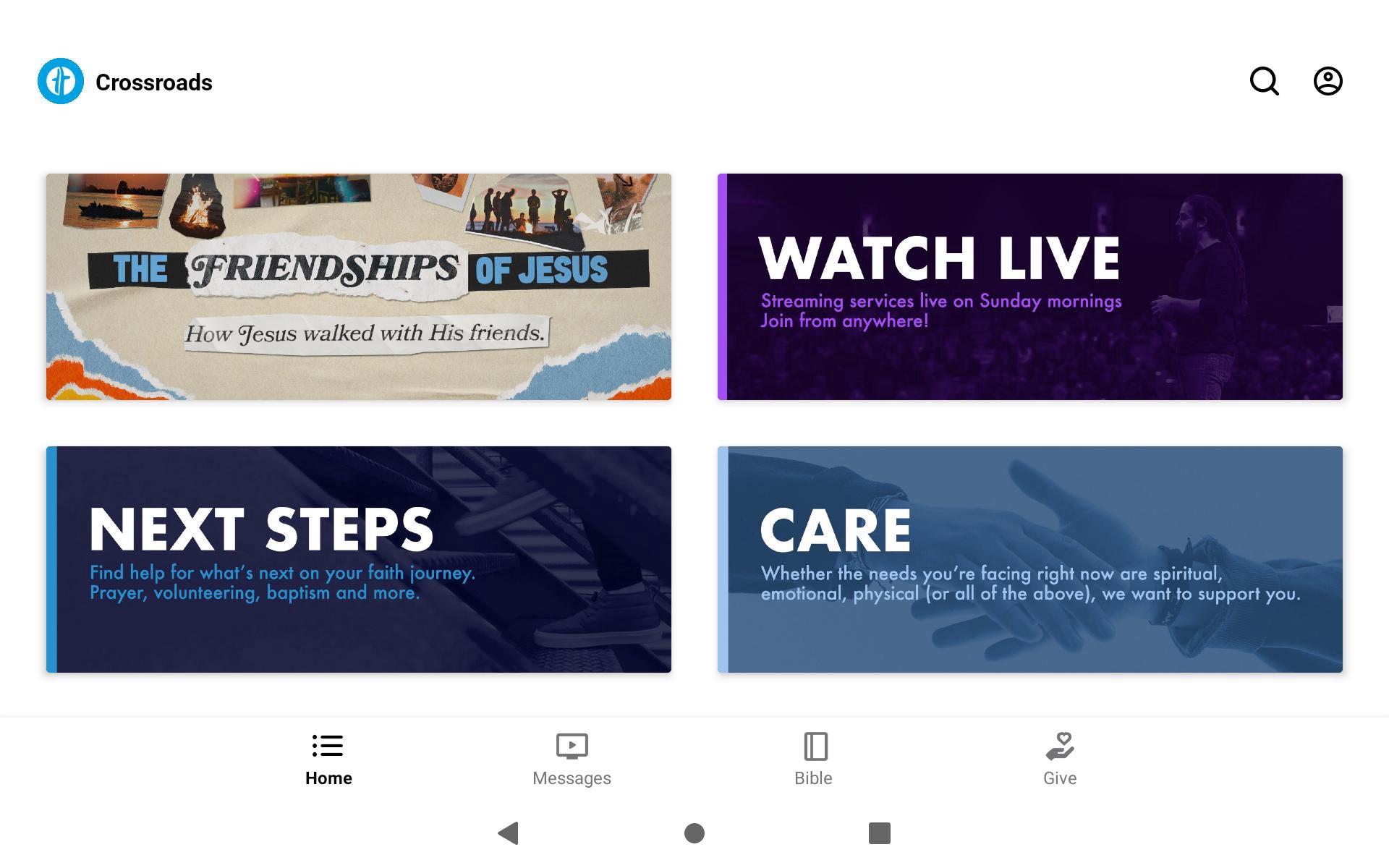 Welcome to the official Crossroads Community Church app. This app conveniently and easily allows you to: • Connect with Crossroads Ministries • Watch Messages and more Media • Watch Live Streams • Take Next Steps • Get Prayer • Follow Bible reading plans and be connected with related sermons Crossroads Community Church is a community who loves Jesus. As we simply respond to Jesus, He takes ordinary people like us and uses us in extraordinary ways. We know God is in control, and we believe He gives us everything we need, not only redeeming us from sin, but equipping us to live an incredible life beyond what we can imagine.