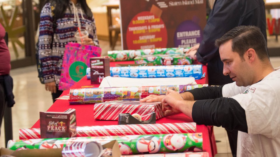 Join us at the Staten Island Mall, in Center Court Upper Level as we wrap gifts for our Staten Island Community. December 2 - December 23 Mon-Fri: 9:30am - 1:30pm & 6pm-9pm Saturdays: 10:00am - 9:00pm Sundays: 2:30pm - 5:30pm
