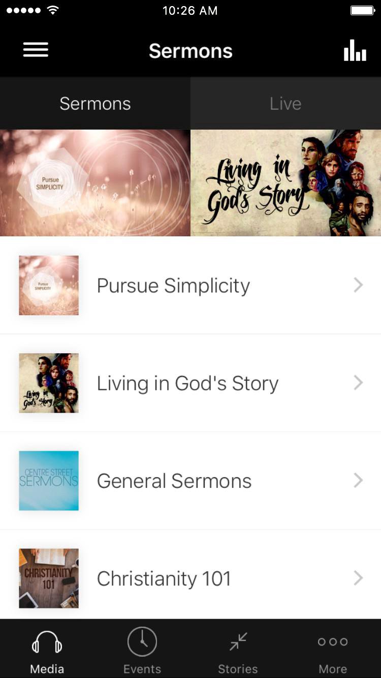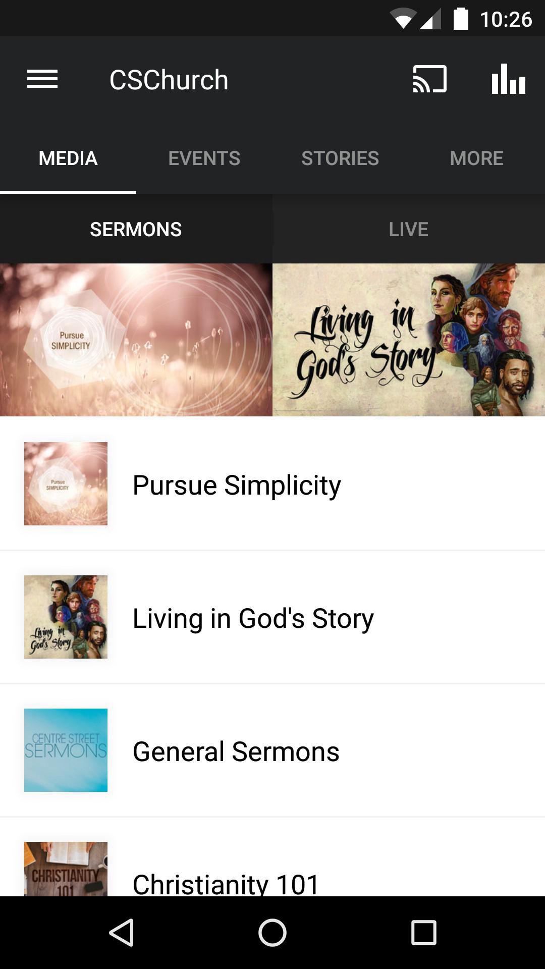 With the Centre Street Church app you will be only a tap away from our sermons, live stream, event information, stories and news. You can browse sermons, share it with your loved ones and together grow. - Listen and watch sermons - Watch live services - Stay up-to-date with the latest events at your campus - Read about life changing stories or ministry news We want to make an impact in your life, your community, your city and your world. How do we go about that? By leading people to Jesus and helping them become fully devoted followers of Christ. That's the driving purpose behind everything we do. Please leave us feedback at http://www.cschurch.ca/contact-us/ The Centre Street Church App was created with the Subsplash App Platform.