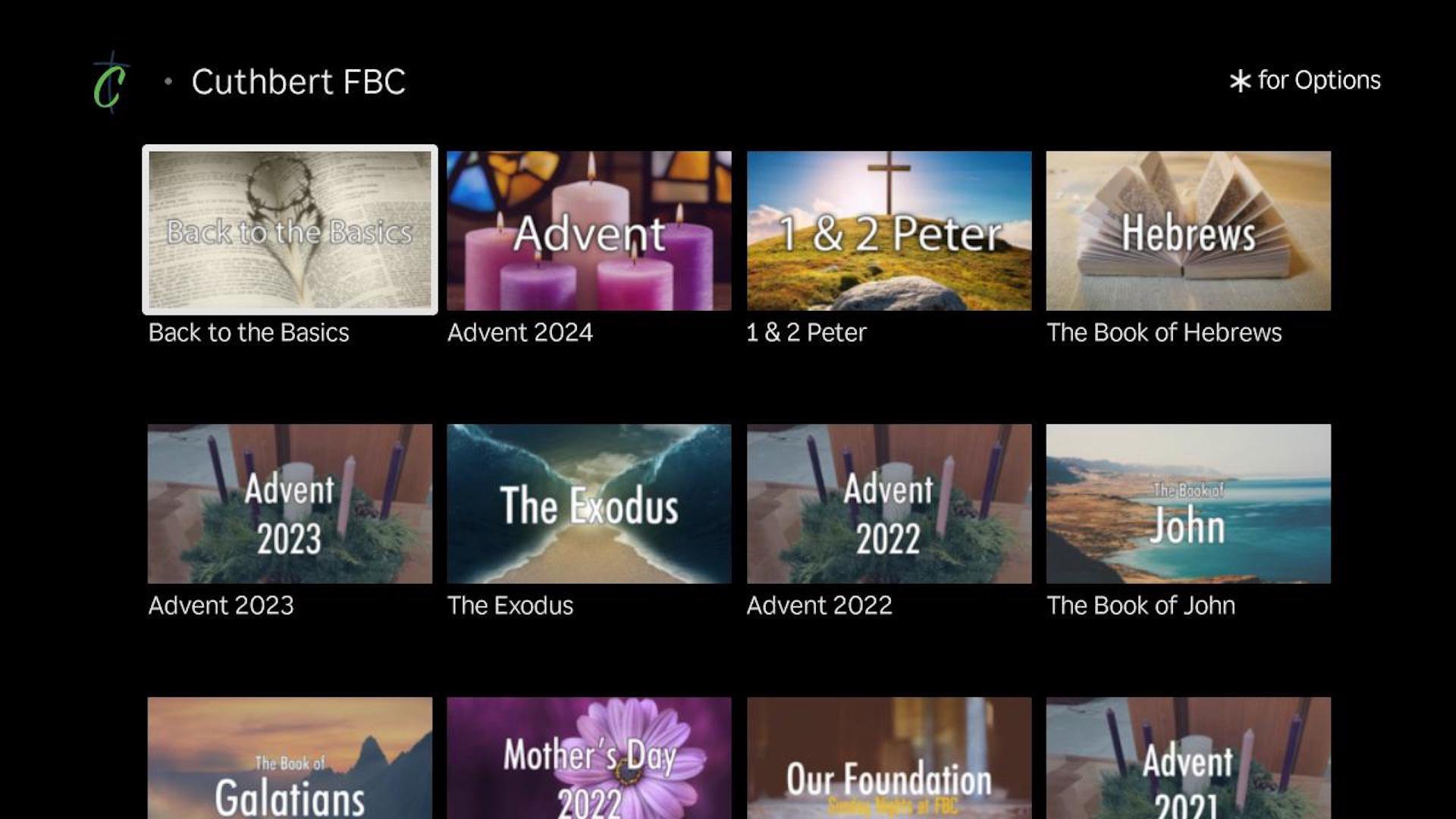 Stay connected with your Cuthbert First Baptist Church family. With our app you can: - Livestream our worship services - Watch or listen to past messages - Stay up to date with push notifications - Share your favorite messages via Twitter, Facebook, or email - Download messages for offline listening - Get current information about upcoming events