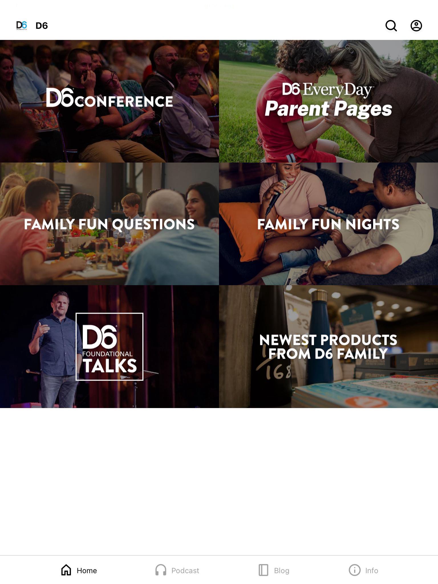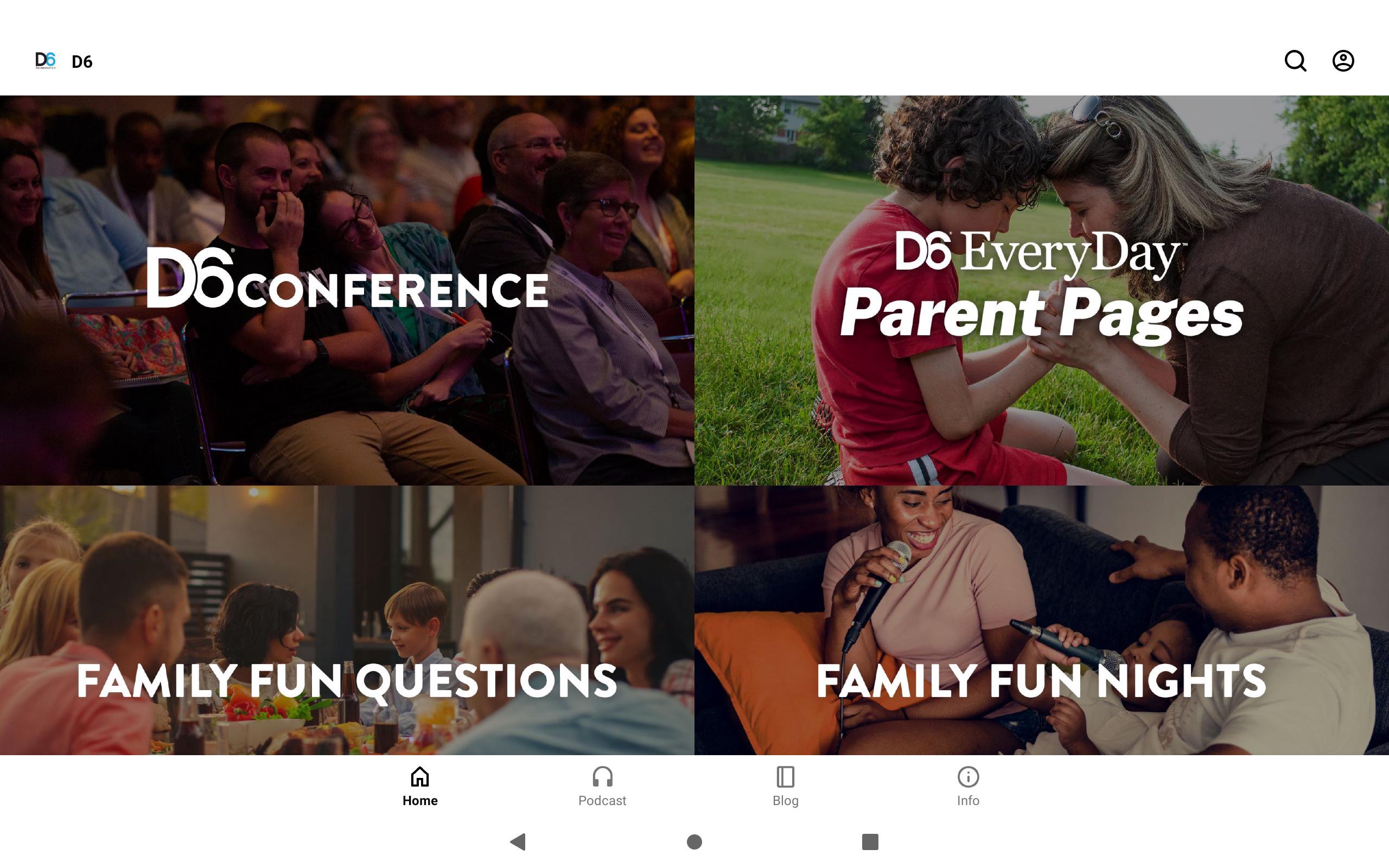 Based on Deuteronomy 6, D6 is the leading voice in family ministry. Scripture teaches that parents are the primary disciplers of their children. Updated weekly, this app delivers resources designed to equip you for generational discipleship. D6 Resources Included: - Family Fun Questions - Home Connection - Family Fun Nights - Foundational Talks - D6 FaPodcast - Blog - And more!