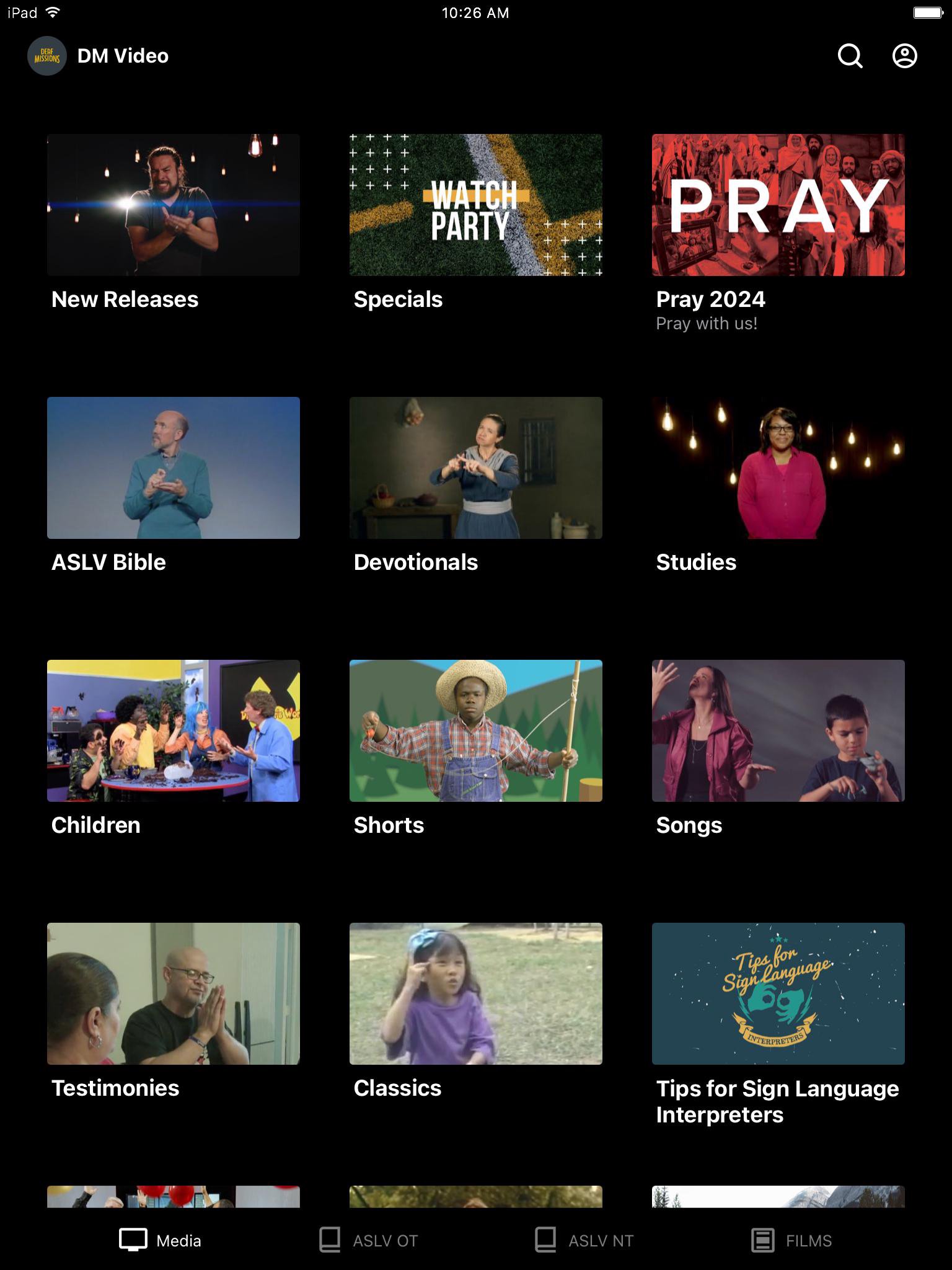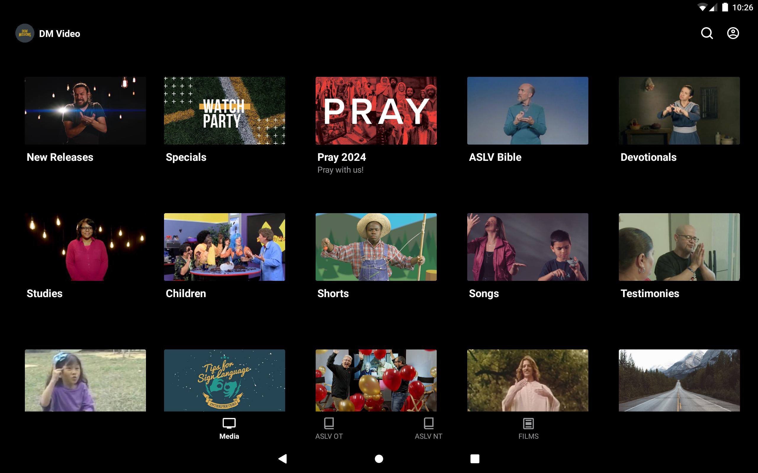 Deaf Missions Video app is packaged with high quality Biblical video content in American Sign Language for you, your family and your friends to grow and stay connected. With this app, you can: - Study The Bible: American Sign Language Version - Spend quiet time with our daily devotions - Teach your children with our children programs - Be encouraged with sermons, short clips and more! - Stay up to date with push notifications - Share your favorite messages via Twitter, Facebook, or email - Download messages for offline listening