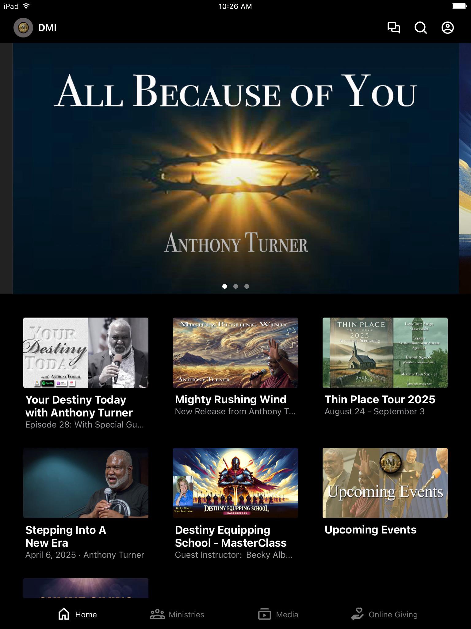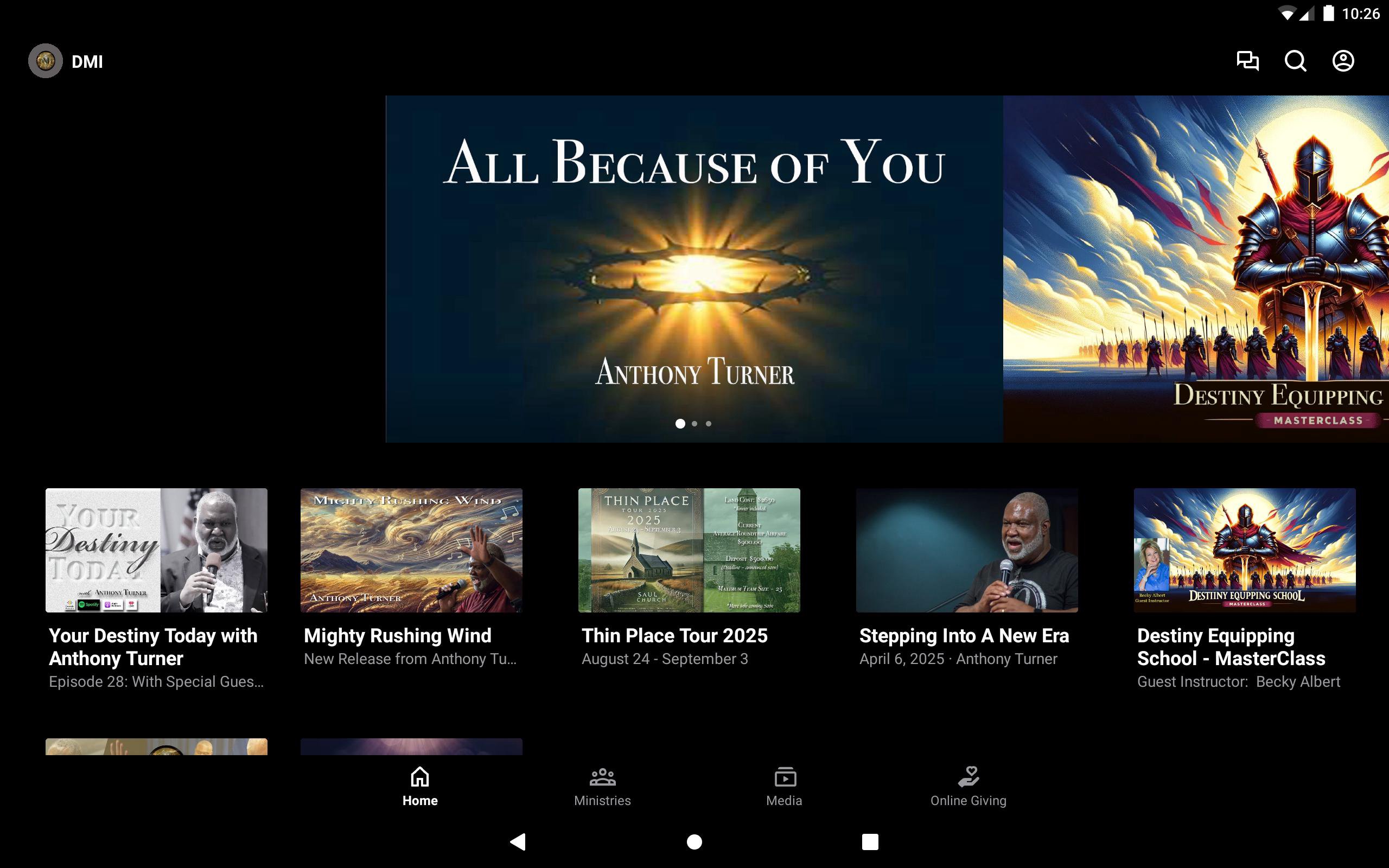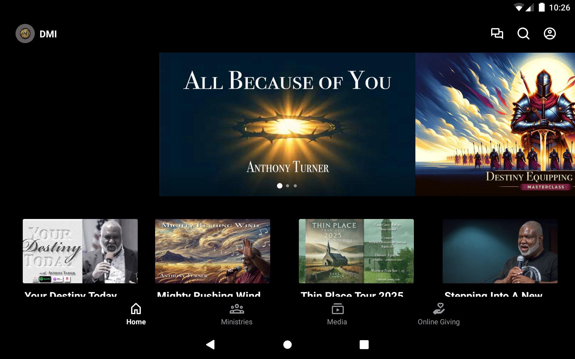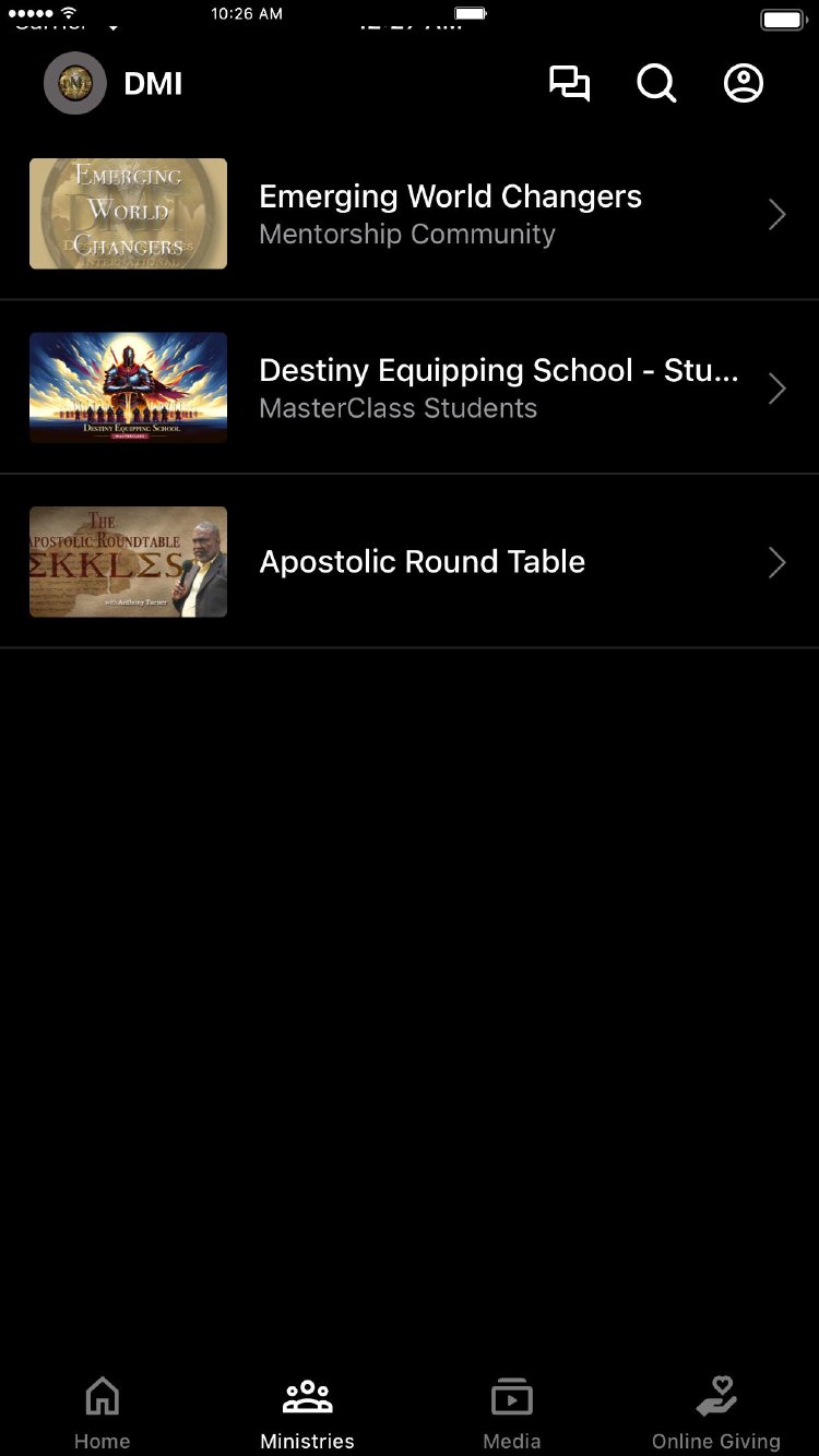 This app will help you stay connected with the day-to-day life of Destiny Ministries Intl. With this app, you can watch or listen to past messages, stay updated with push notifications, read the Bible, and view our calendar.