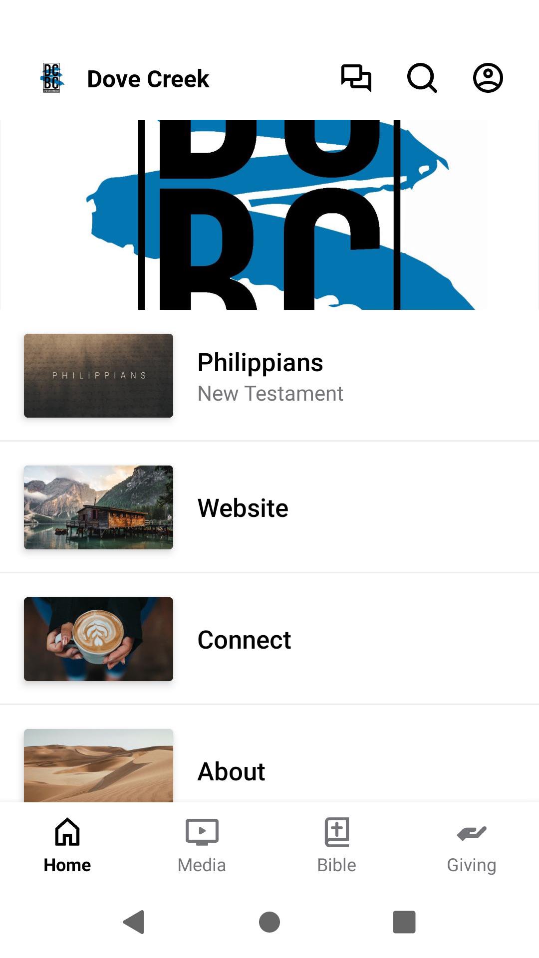 Official app for Dove Creek Bible Church located in Bakersfield California. This app will help you stay connected with the day-to-day life of our church. With this app, you can watch or listen to past messages, stay updated with push notifications, and read the Bible.