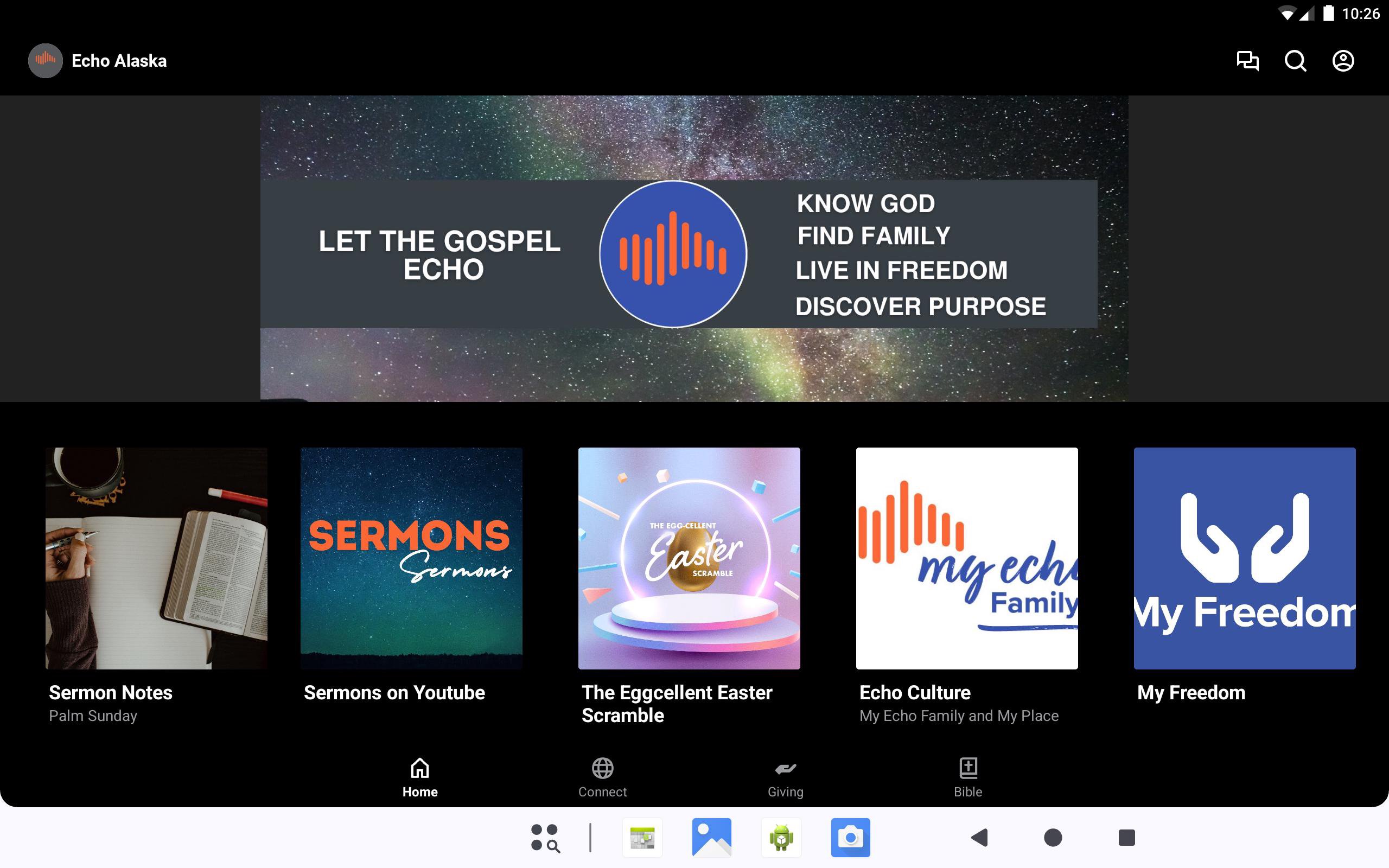 This app will help you stay connected with our church. With this app, you can watch past sermons, stay updated with push notifications, read the Bible, and view our calendar.