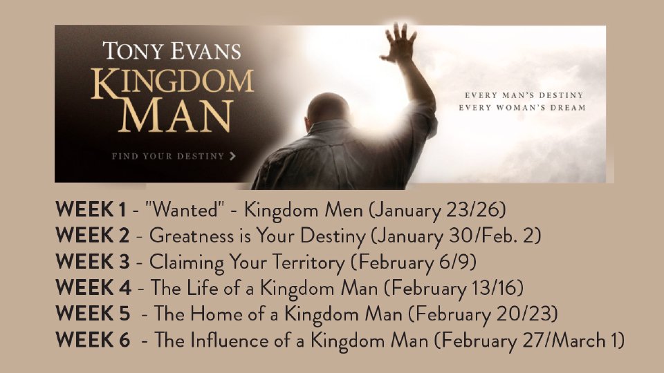 The men of Emmanuel will be studying a highly-important book and video series entitled "Kingdom Man" by Tony Evans. This is an awesome opportunity to step into discipleship right now! Contact mike.kim@erc.la for more details.