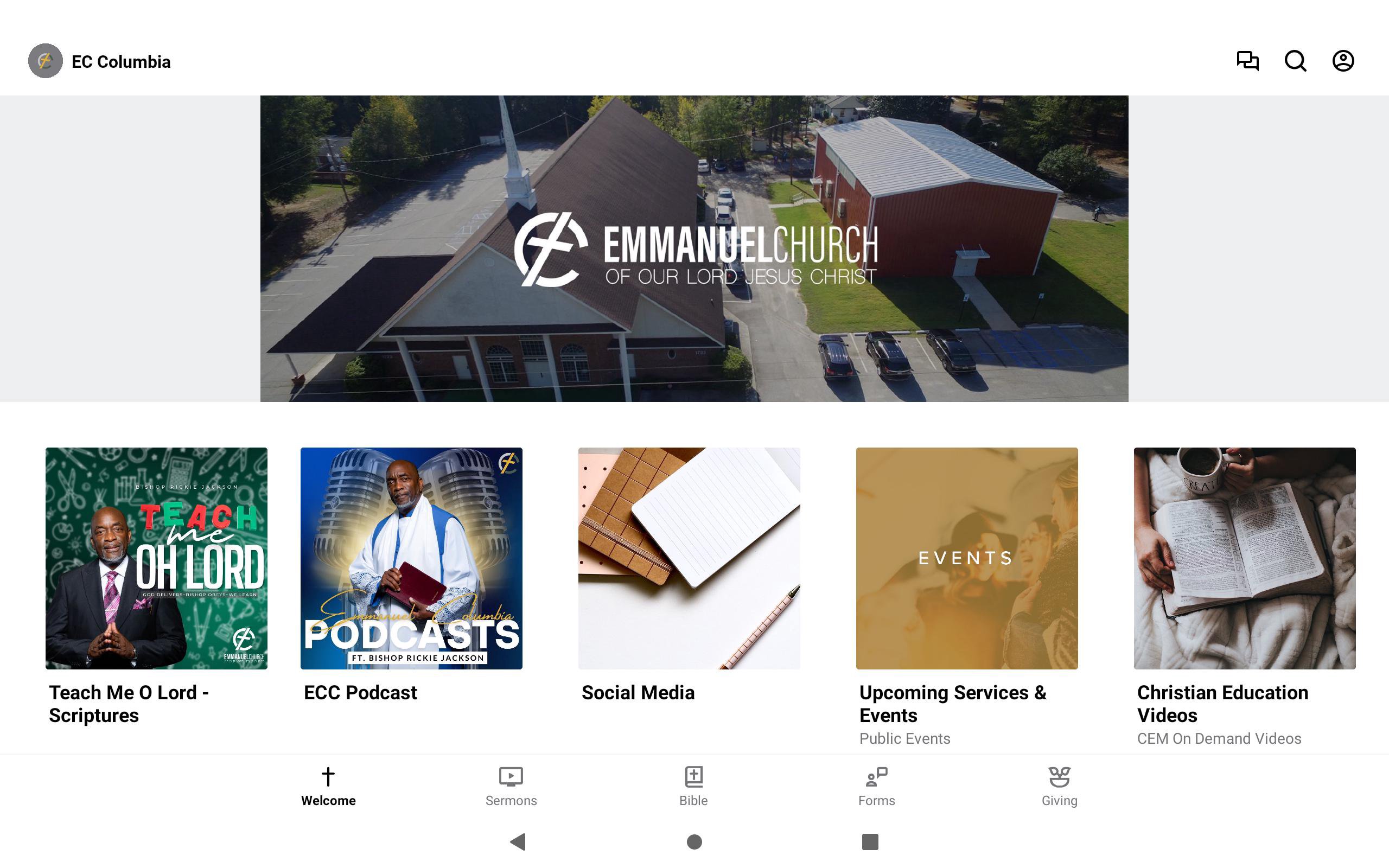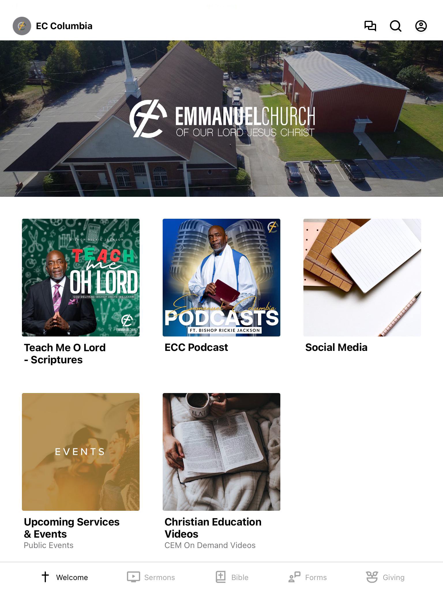 The official Church app for Emmanuel Columbia Church This app will help you stay connected with the activities and upcoming events and services at our church. With this app you can: watch or listen to On Demand messages; stay up to date with push notifications; share your favorite messages via social media or email; and download messages for offline playback.
