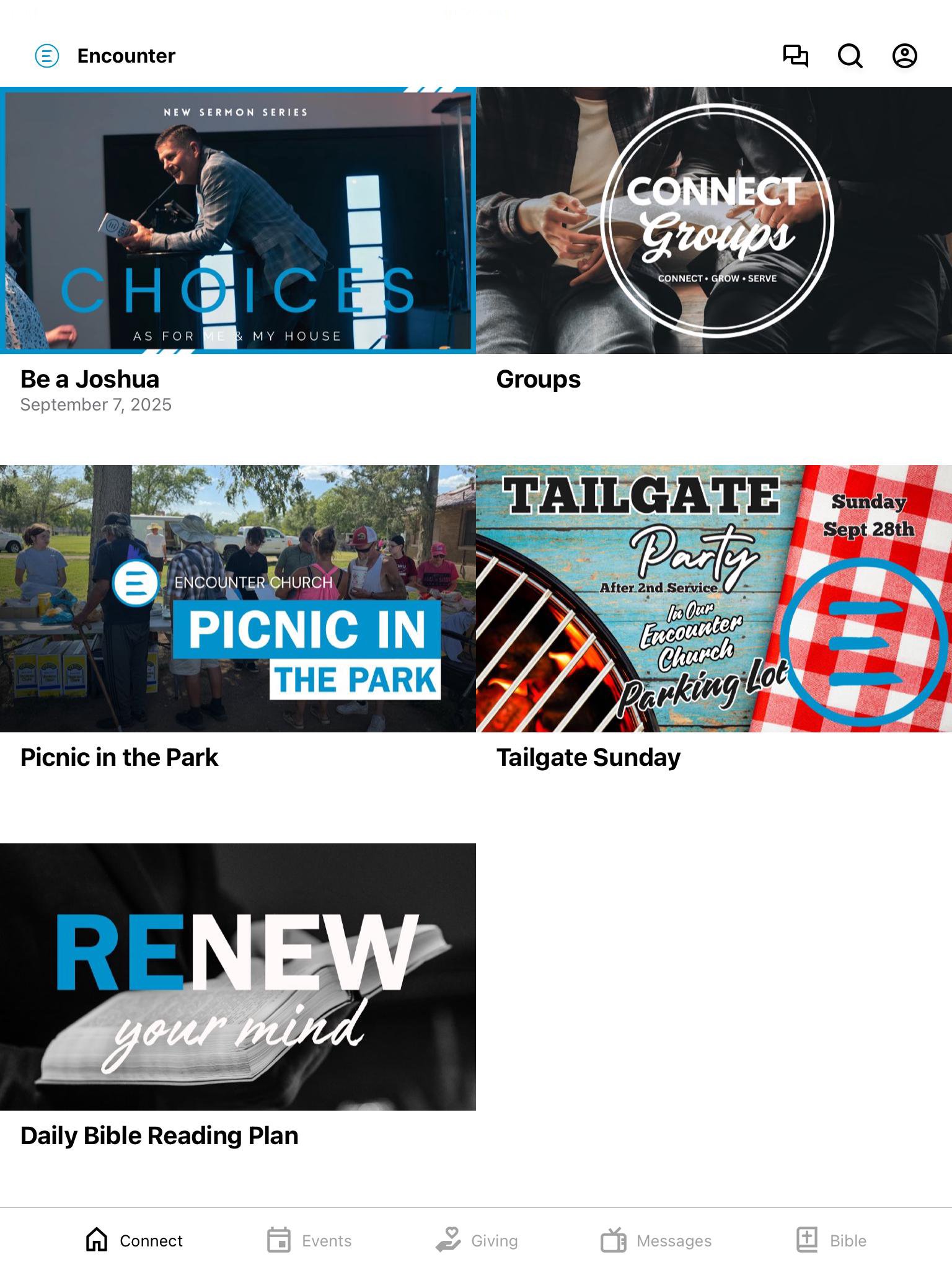 With the Encounter Church Amarillo app, you'll always be a tap away from sermons, news, events, podcasts, blogs, giving and more! We want you to encounter the fullness of God through revelation and transformation, by connecting, growing, and serving.
