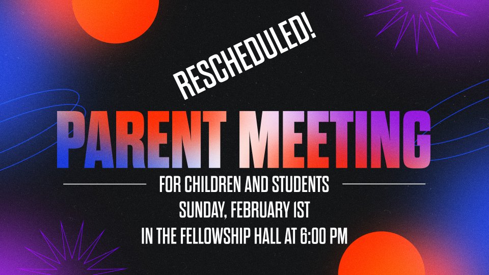 Parent Meeting for Children and Student Ministry in the Fellowship Hall at 6:00 p.m.