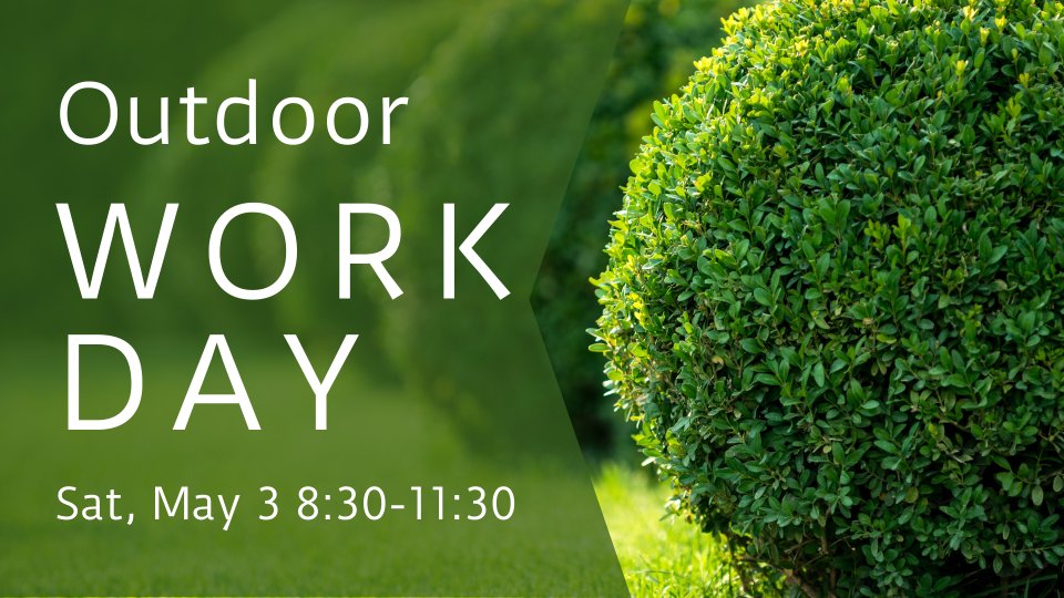 We'll meet in the Narthex for coffee and donuts at 8:30 AM. At this time we'll view the board with the jobs listed, communicate what needs to be done, and distribute the work. We'll edge flower beds, trim bushes, weed, add mulch to the outdoor worship space, etc. Helpful tools: shovels, hoes, garden gloves, trowels.