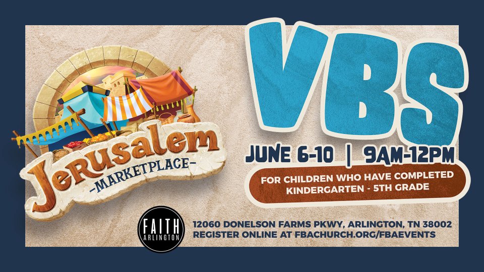 SAVE THE DATE What: VBS When: Monday-Friday, June 6-10, 2022 Time: 9:00AM-12:00PM Where: Faith Arlington Church Who: Children who have completed Kindergarten-5th Grade