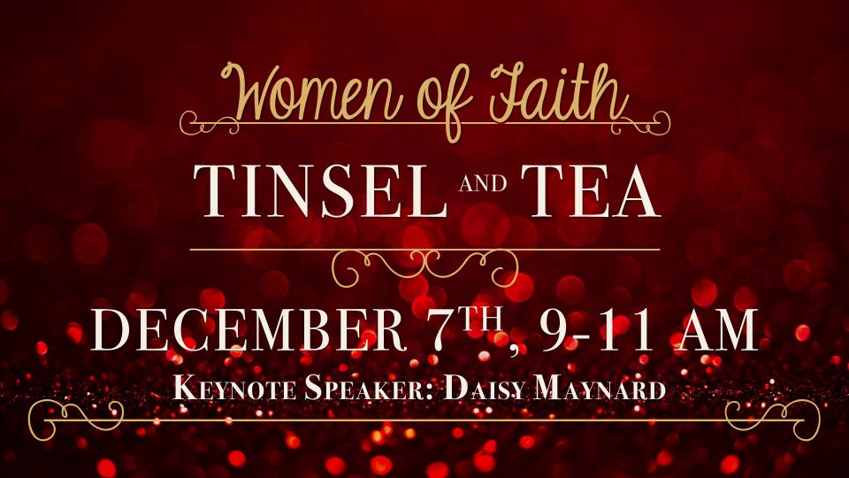 Ladies! You will NOT want to miss this event. It will be a tinselly time of treats, tunes, tickles, and teaching for all our Faith ladies. 10$ per person, which includes a scrumptious breakfast!