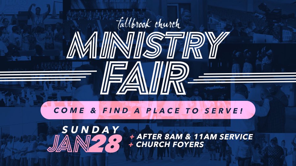 Fallbrook is calling for all Hands-on-Deck, and we’re not stopping any time soon! We want you to get connected. Join us in the church foyer for our campus-wide ministry fair on Sunday, January 28th, after each worship service. Whether you joined last month or you’ve been here for years…. we encourage you to get connected and plugged into a ministry at Fallbrook Church!