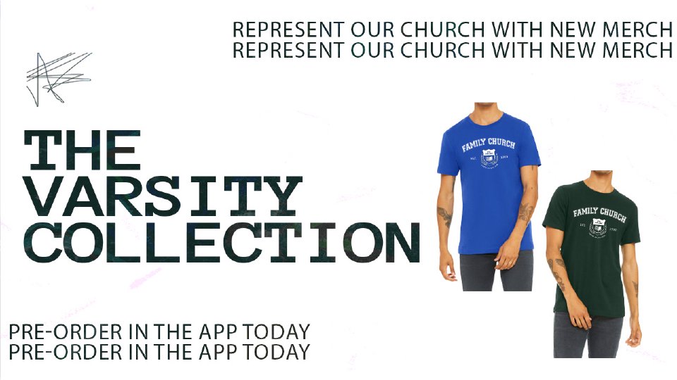 Represent our church with our newest varsity collection of T-shirts & sweatshirts! Select register to order!