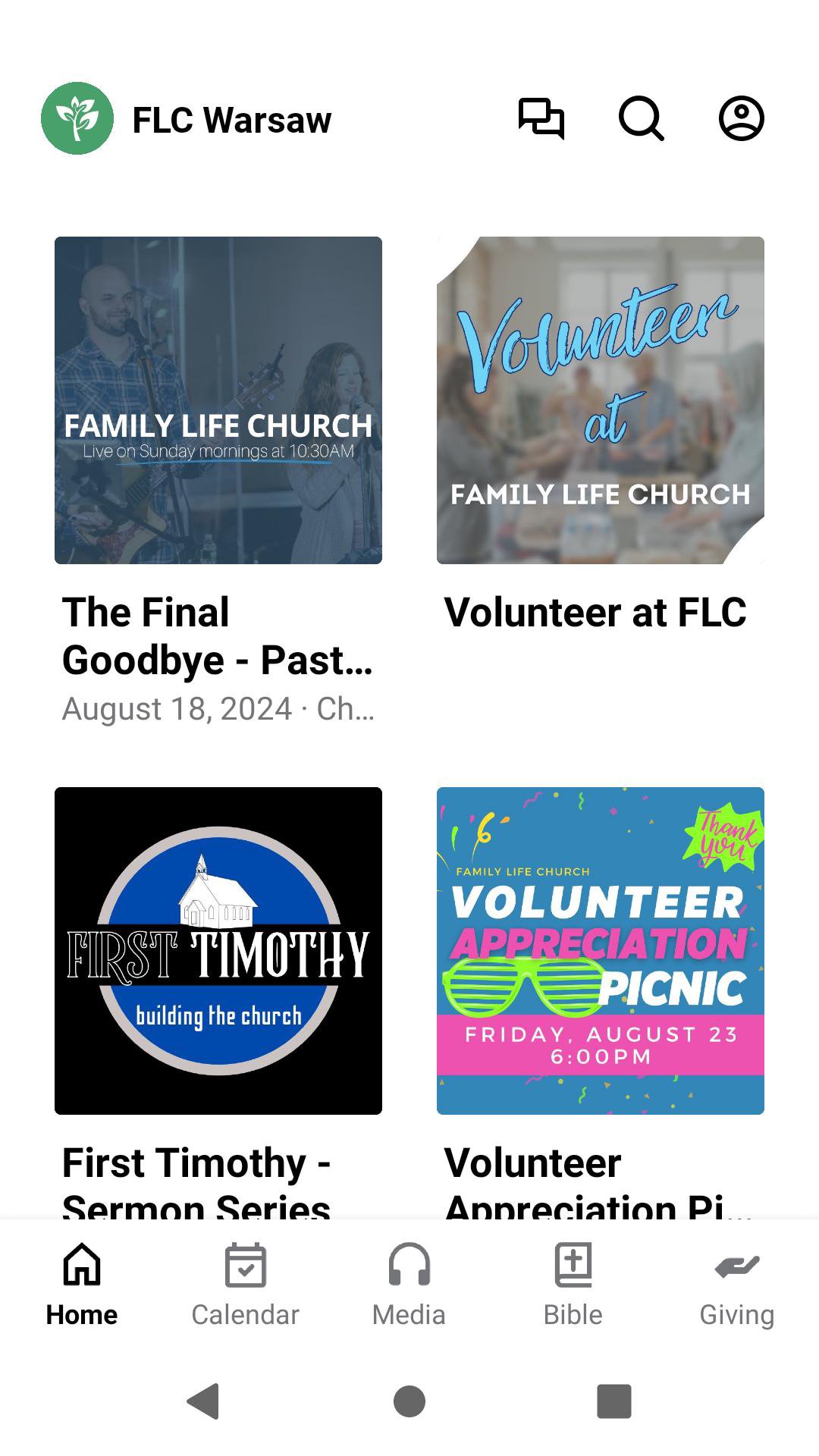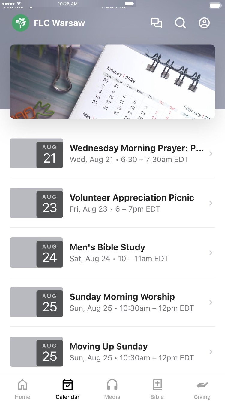 This app provides an easy way to stay connected with everything happening at our church. - Watch live stream services - Get notified about important announcements - Check the church calendar for upcoming events - Simple and secure online giving - Bible reading plans and sermon notes - Group messaging for easy communication
