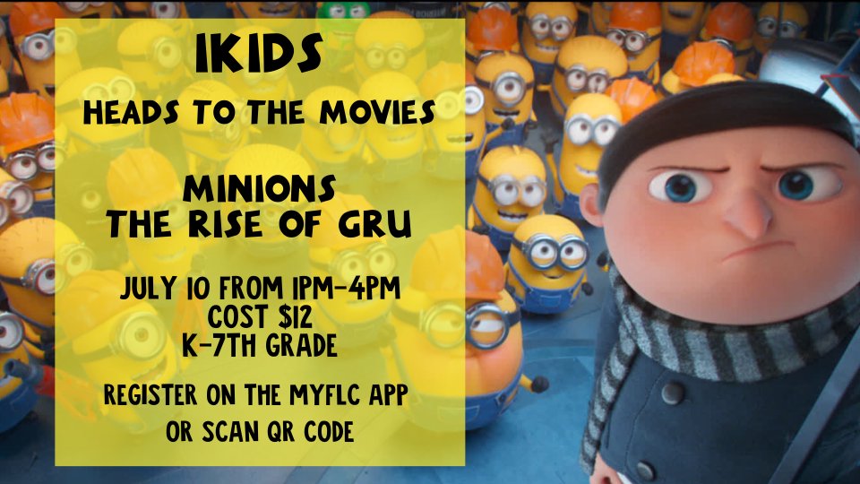 iKiDS is headed to the movies to see Minions the Rise of Gru at the Brazos Mall AMC. Cost is $12.00 and includes lunch, movie and a snack pack. K-7th grade (2022-2023 School Year)
