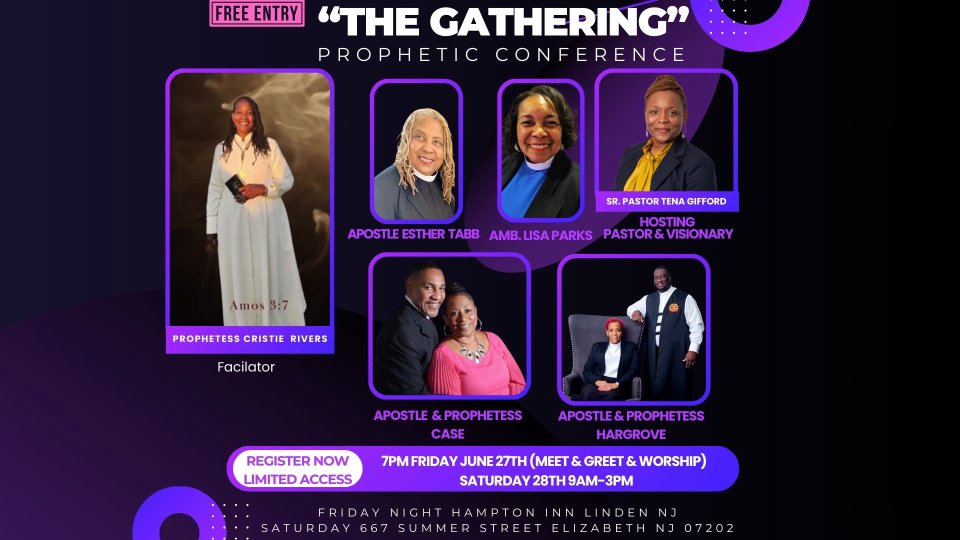 Together we come to "Gather" in his name, all of our God-given abilities under one roof! No competition just complementing the cohesiveness of the holy spirit within us all. An experience like no other coming to this greater NJ area! Every gift bearing the abilities will be represented: