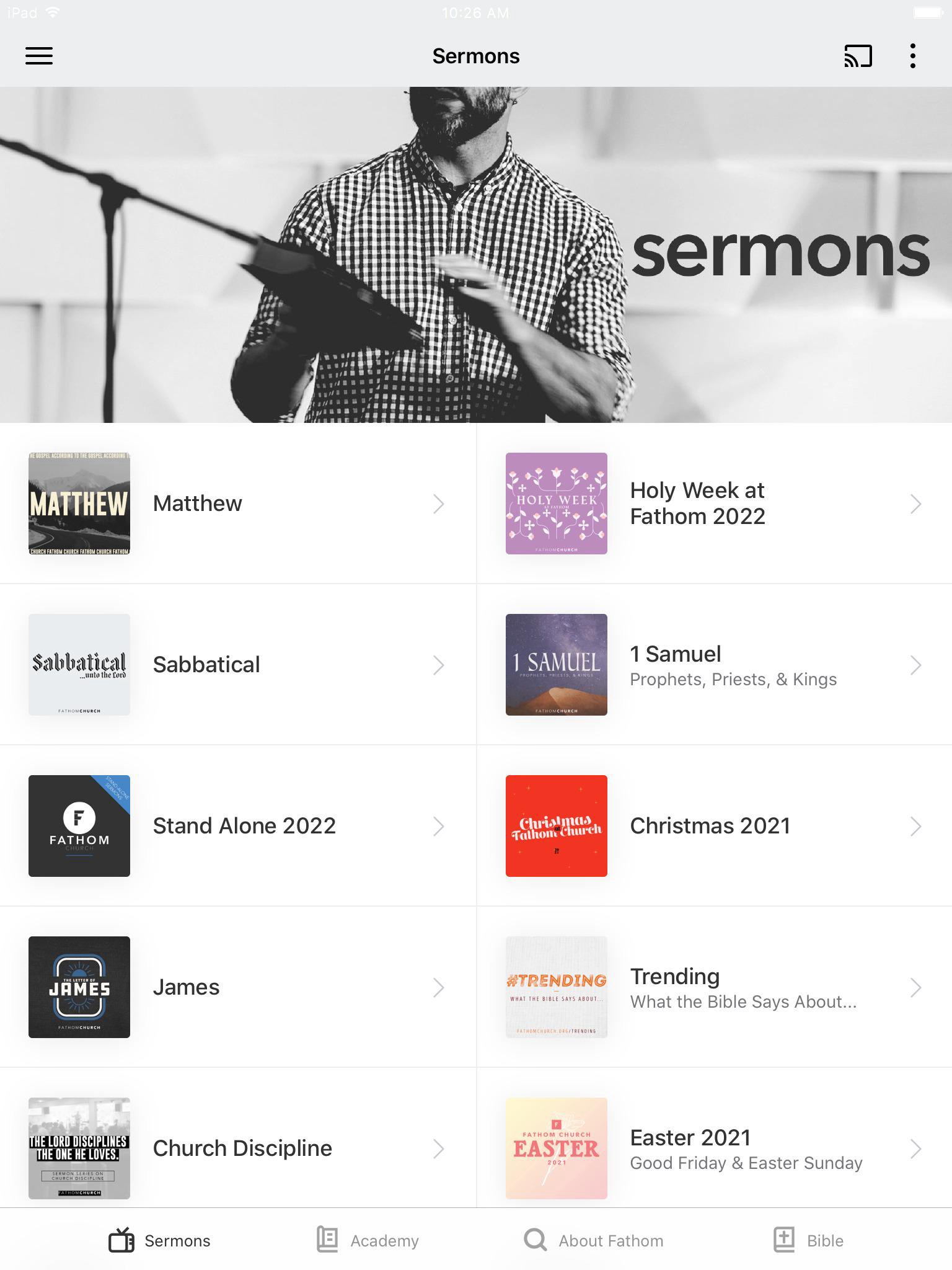 The official Fathom Church App connects you to a variety of resources including sermons, articles, event information, and more.