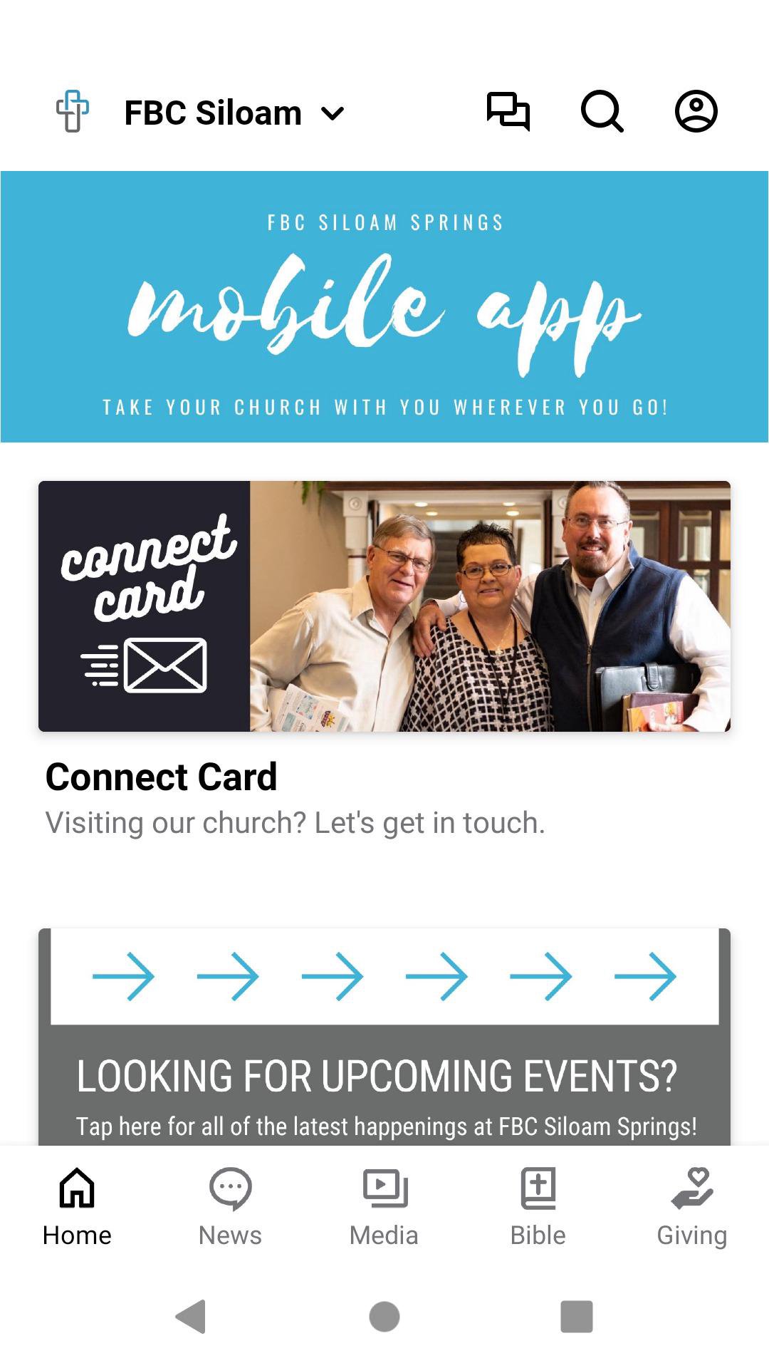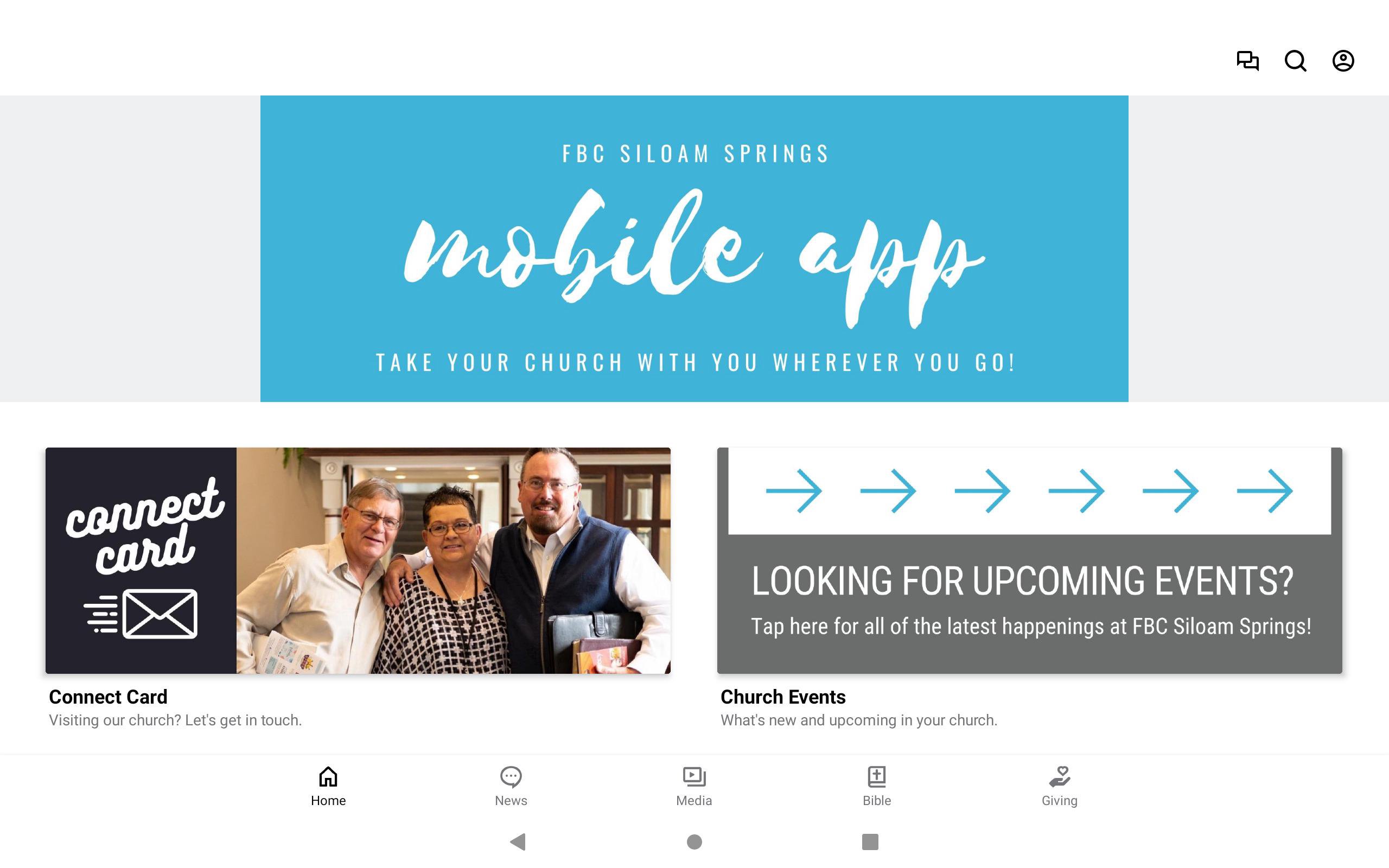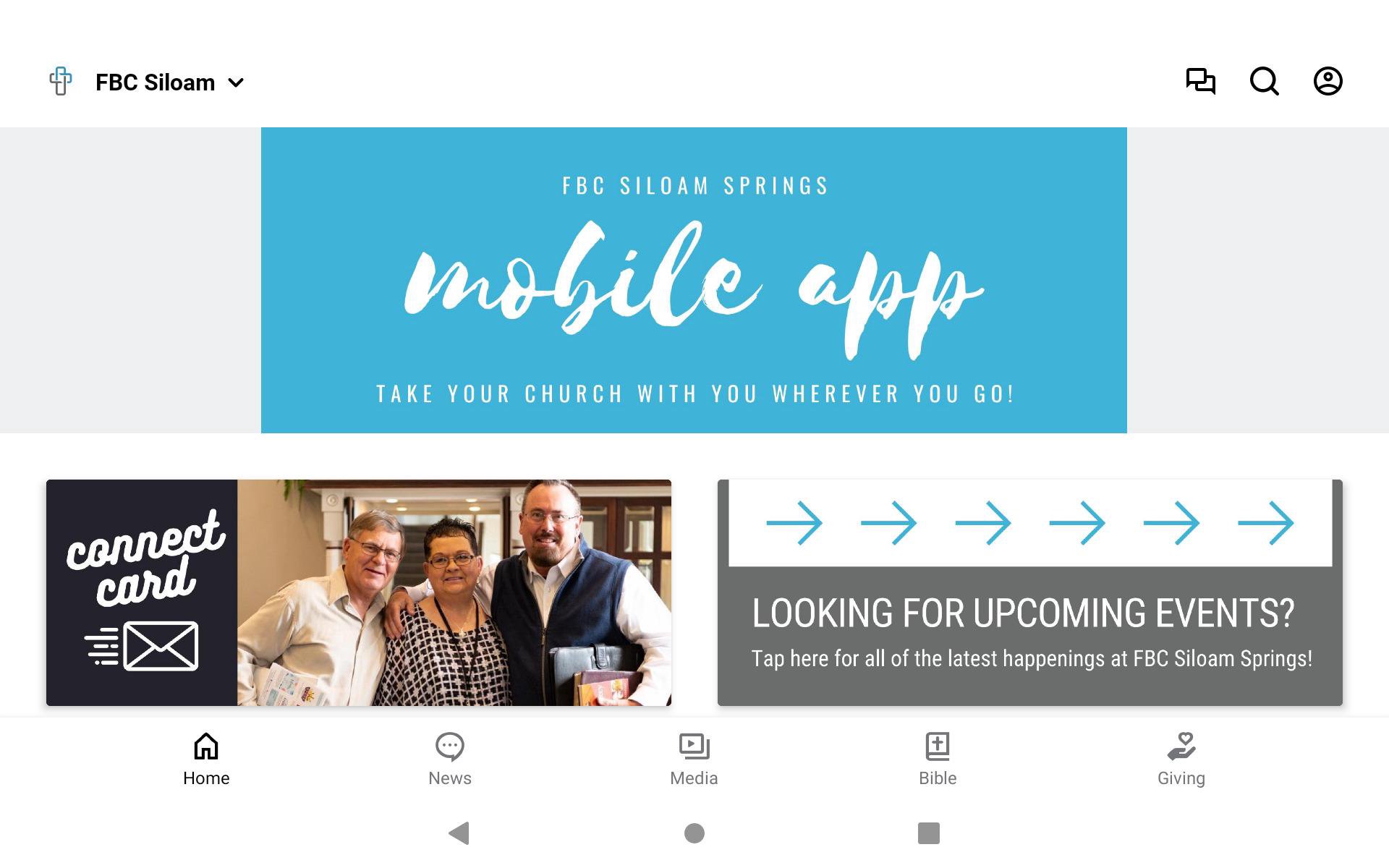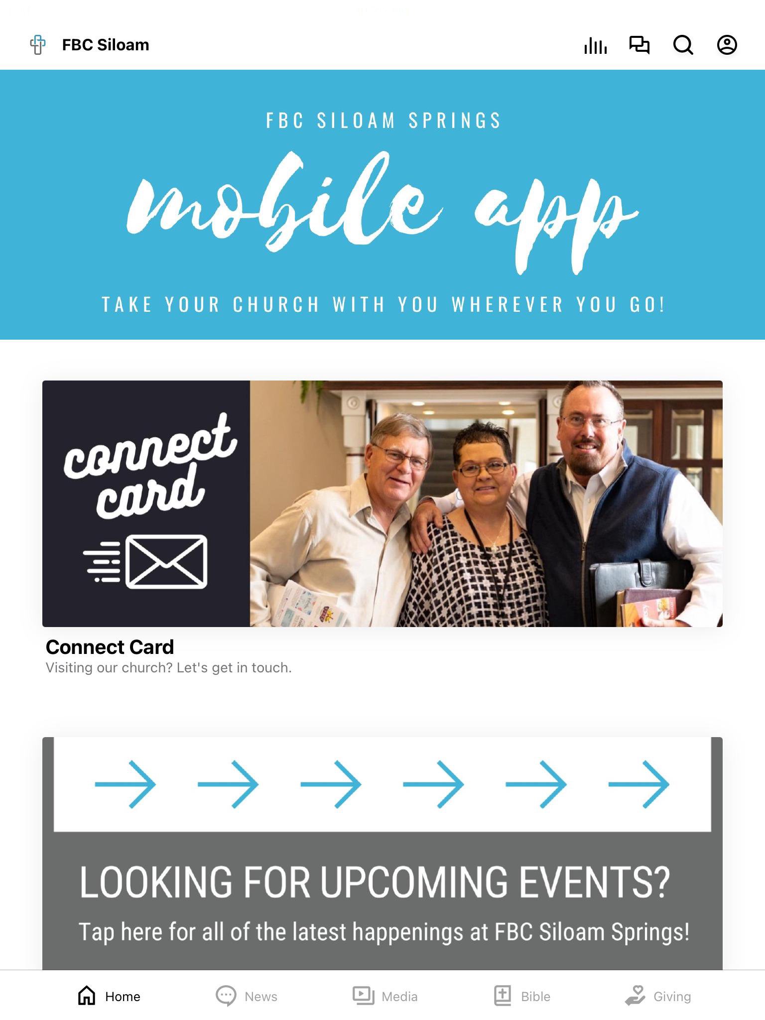 This app will help you stay connected with the day-to-day life of our church. With this app, you can: watch or listen to past messages; stay up to date with push notifications; share your favorite messages via Twitter, Facebook, or email; and download messages for offline listening. The FBC Siloam Springs mobile app has been designed from the ground up to be a resource for church members to stay connected in and outside of the church. We are firm believers that the church is comprised of the people, and that includes you! Our mobile app contains many valuable resources for church members to take advantage of including digital sermon notes, weekly worship service broadcasts if you weren't able to attend the previous Sunday, an extensive church media library, important announcements through various forms including push notifications and occasional text messages, a built-in messaging system for connecting with one another outside of church walls, important event calendars, an integrated Bible app, and most importantly - information on finding your spiritual shape and joining church ministries.