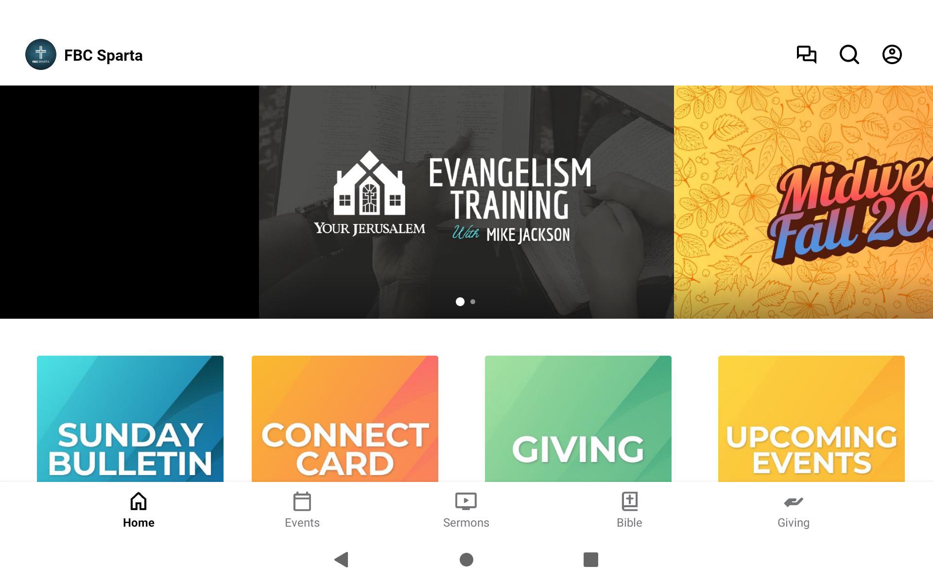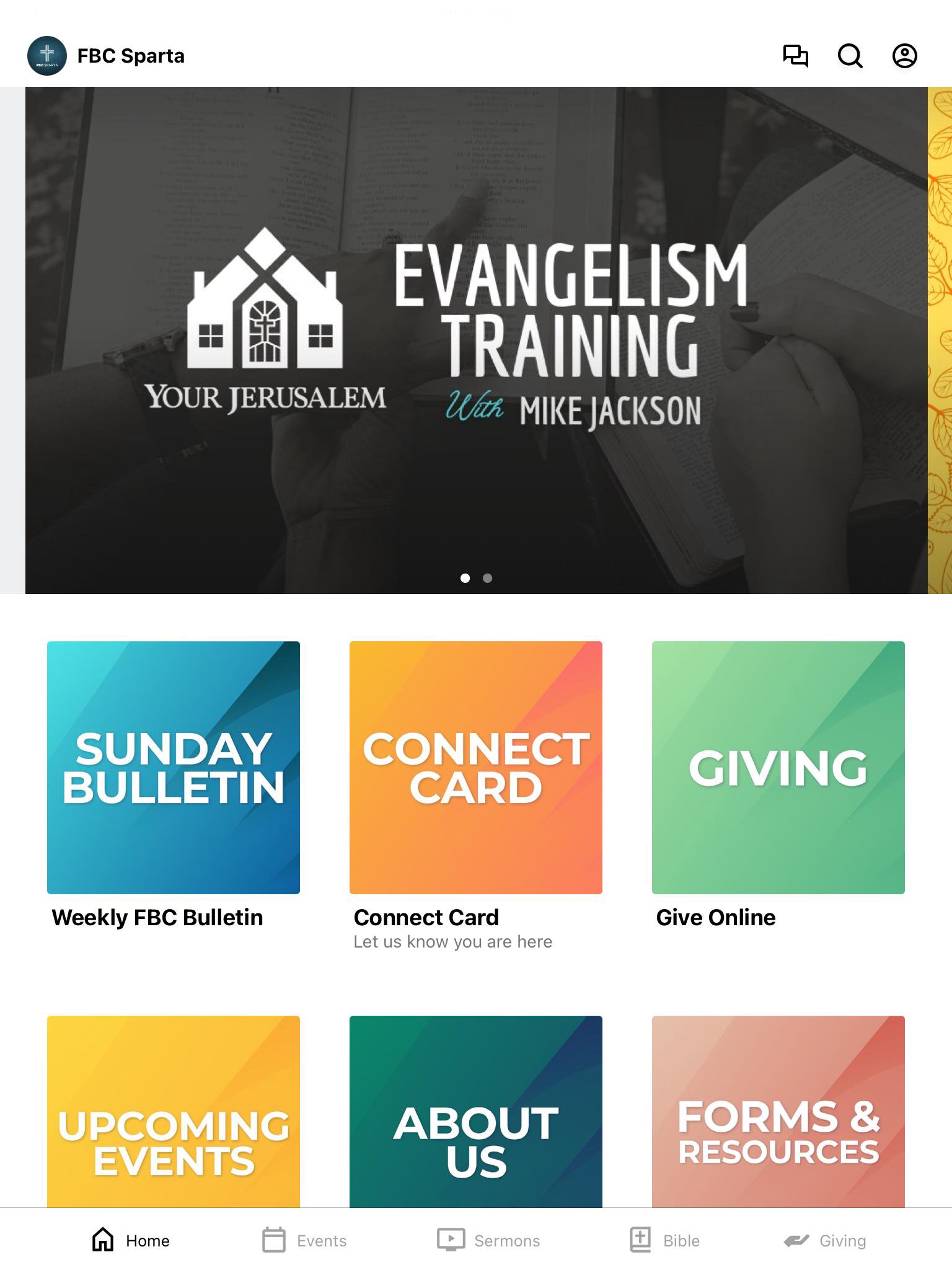 This app will help you stay connected with all things FBC Sparta. With this app you can: - stream our worship services - listen or view past sermons from our Pastoral team - keep up and register for upcoming events - stay up to date with push notifications - give online safely and securely - get connected with others from FBC Sparta Come be a part of what God is doing at FBC Sparta! For more information, visit us at fbcsparta.org.