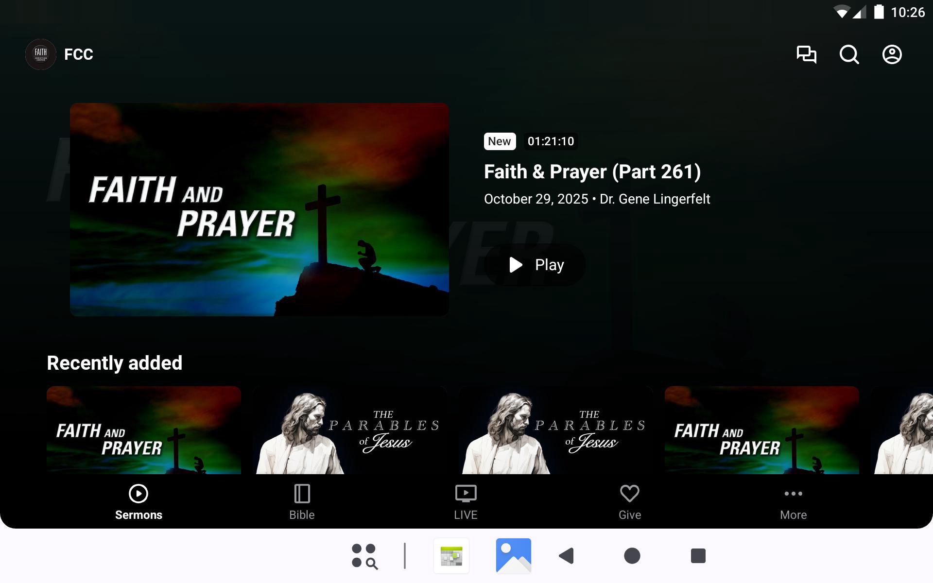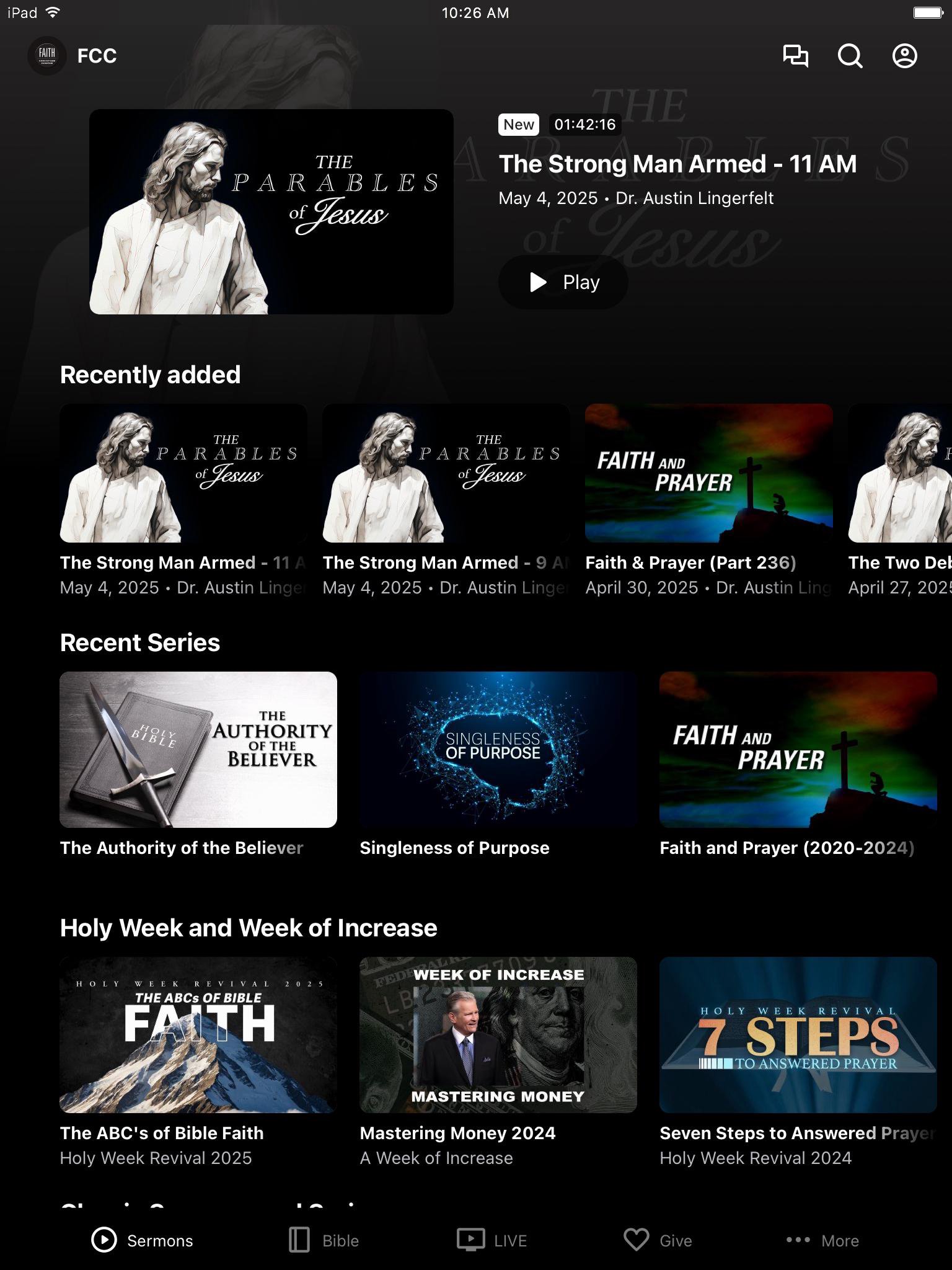 This free application allows you to listen to or watch recent messages and worship, access mobile giving, stay current with church events, and share with friends via Instagram, Facebook, and email. For more information about Faith Christian Center, please visit us at http://www.faithchristiancenter.com The Faith Christian Center app was created with The Church App by Subsplash.
