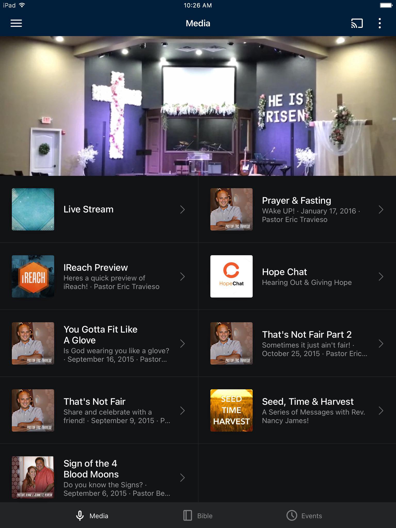 Welcome to the official Floresville Christian Fellowship iReach application! When you download this FREE app, you're only a tap away from Pastor Bennie Herrera's and Pastor Eric Travieso's weekly messages delivered straight from our Celebration Services! Check out all kinds of content that interests you from our Media Center and from our weekly videos. Stay up to date with our events, calendars and so much more. After you’ve downloaded and enjoyed the content, you can share it with your friends via Twitter, Facebook, or email. WiFi internet is required for touch. For more information about FCF iReach, please visit: http://www.fcfalive.org/ The iReach app was developed with the Subsplash App Platform.