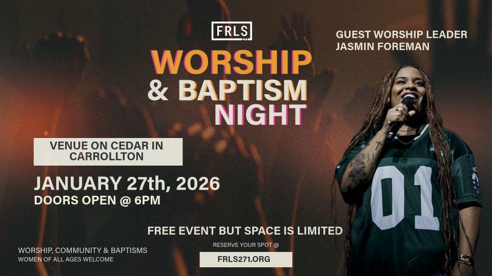 Join us for a powerful evening of worship and baptisms, created for women of every age and stage of life. Doors open at 6:00 PM, and the event begins at 7:00 PM. Special guest worship leader Jasmin Foreman is joining us for the evening too! Due to space restrictions please let us know your coming by signing up so we can have a headcount. Event is free!