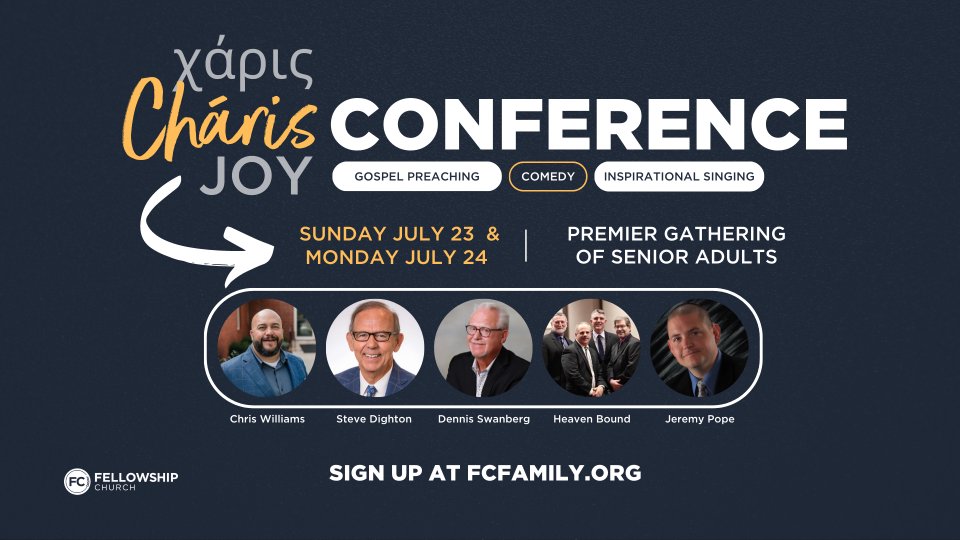 Kansas City's premier gathering of senior adults to be encouraged through gospel preaching, inspirational singing, comedy and more! The Charis Conference will restore your joy, renew your mind and encourage you in this season of life. Sunday, July 23rd - 6:00PM-8:30PM Monday, July 24th - 9:00AM-12:00PM & 6:00PM-8:30PM