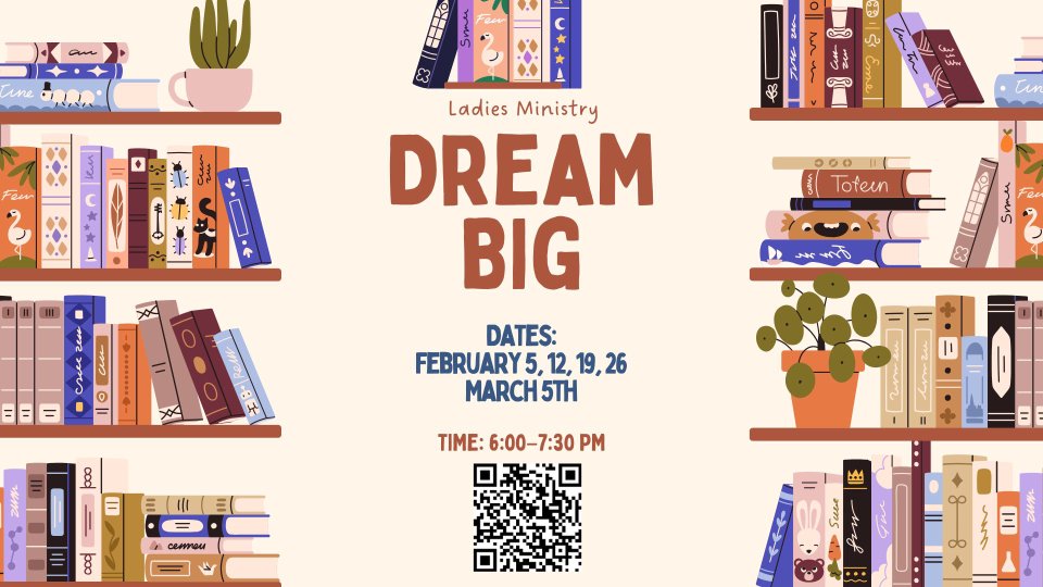 Join us this winter as we dive into Dream Big — a powerful study designed to help you discover God’s purpose, grow in faith, and take bold steps toward the dreams He’s placed in your heart!
