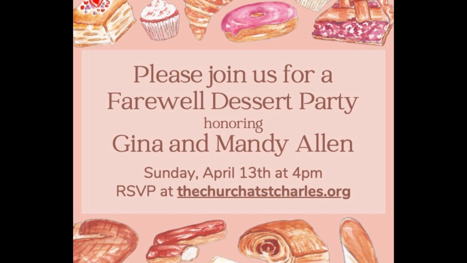 Join us on April 13 at 4:00pm for a farewell dessert party honoring Gina and Mandy Allen.