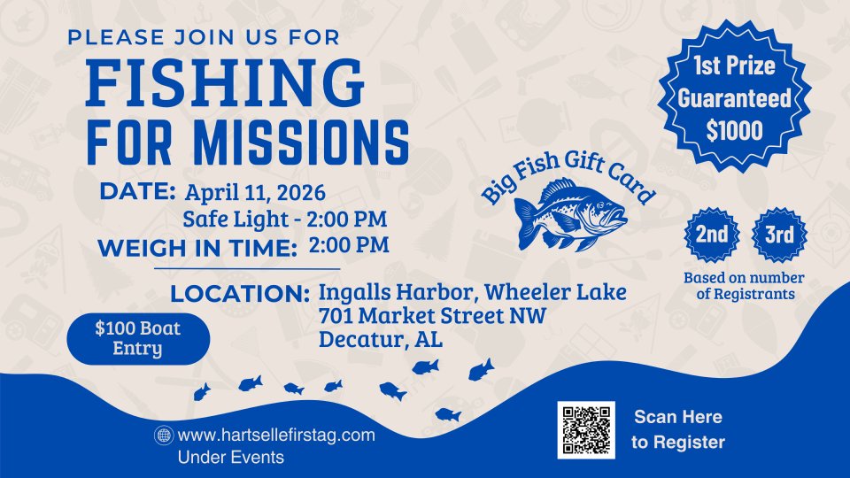 Join us at Ingalls Harbor on April 11 for a fishing tournament. All proceeds will go to missions. $100 boat entry fee. Launch at safe light and weigh in at 2pm.