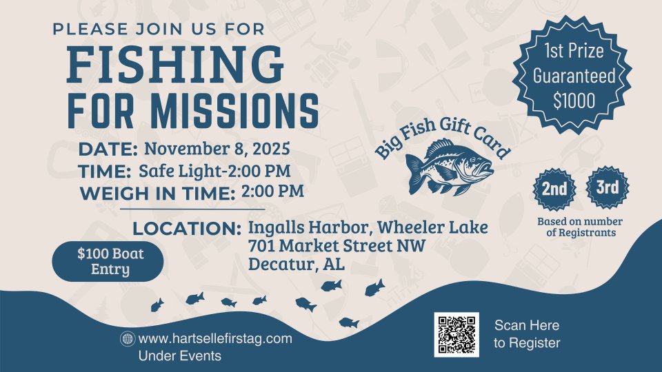 Join us at Ingalls Harbor on Nov. 8 for a fishing tournament. All proceeds will go to missions. $100 boat entry fee. Launch at safe light and weigh in at 2pm.